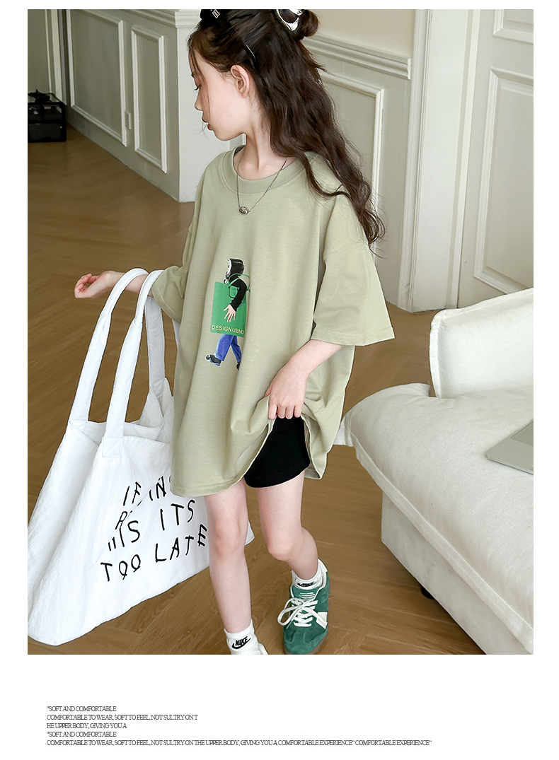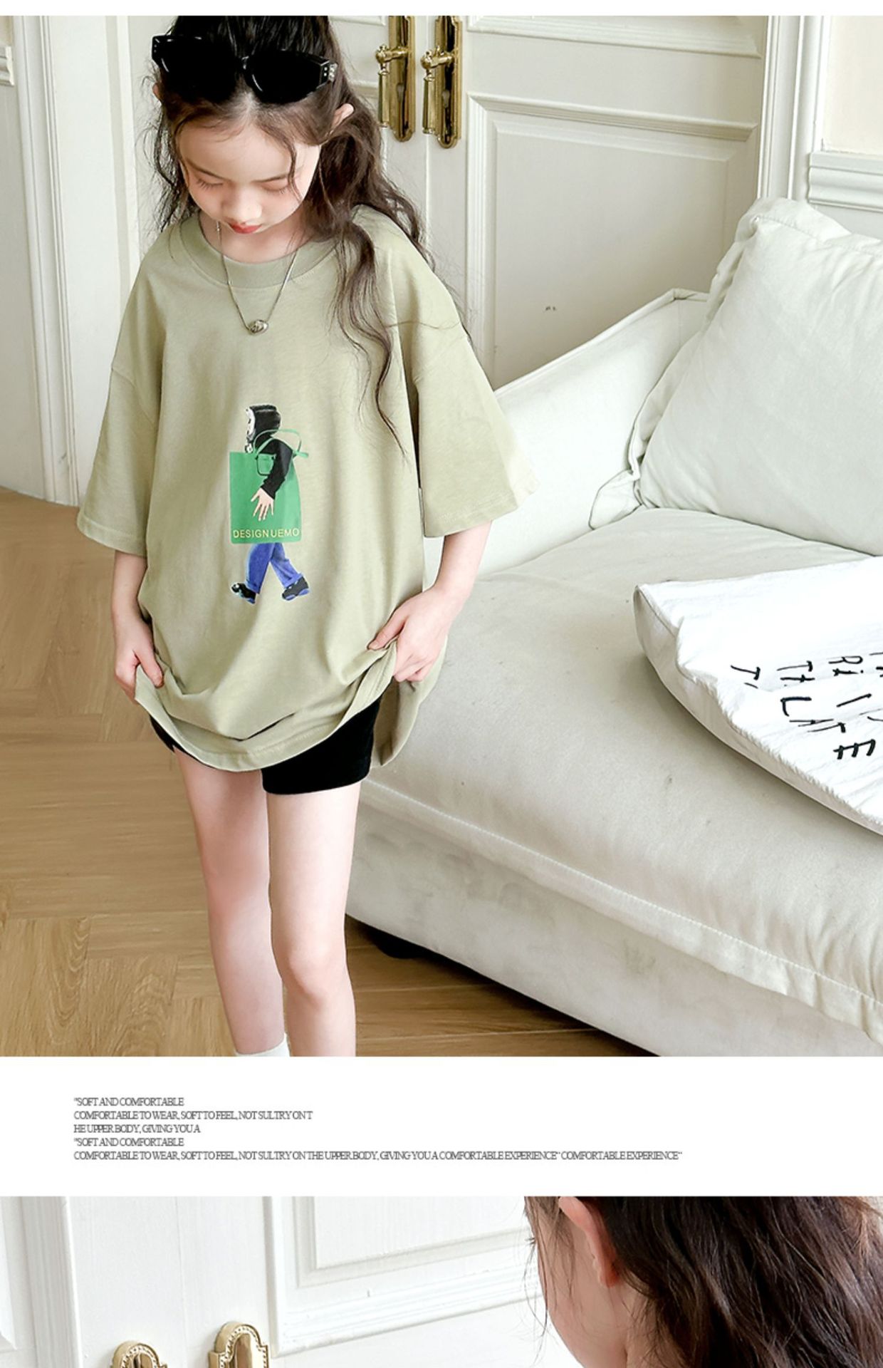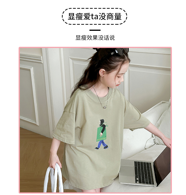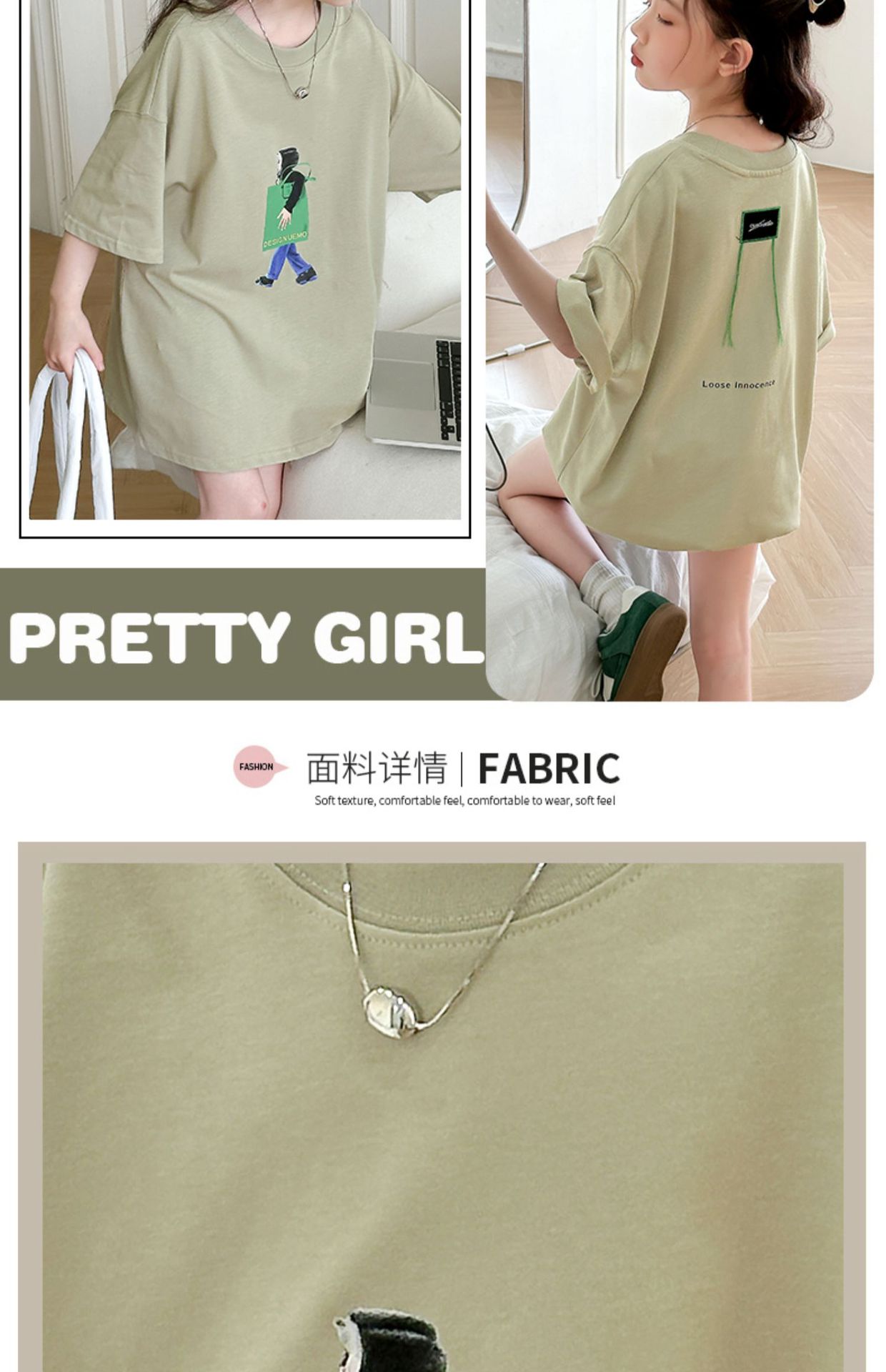 여자 반팔 티셔츠 유행 브랜드 여름 2025 새로운 스타일 어린이 소녀의 녹색 반소매 소녀의 빅 보이 슈퍼 니스 탑스토어 가기