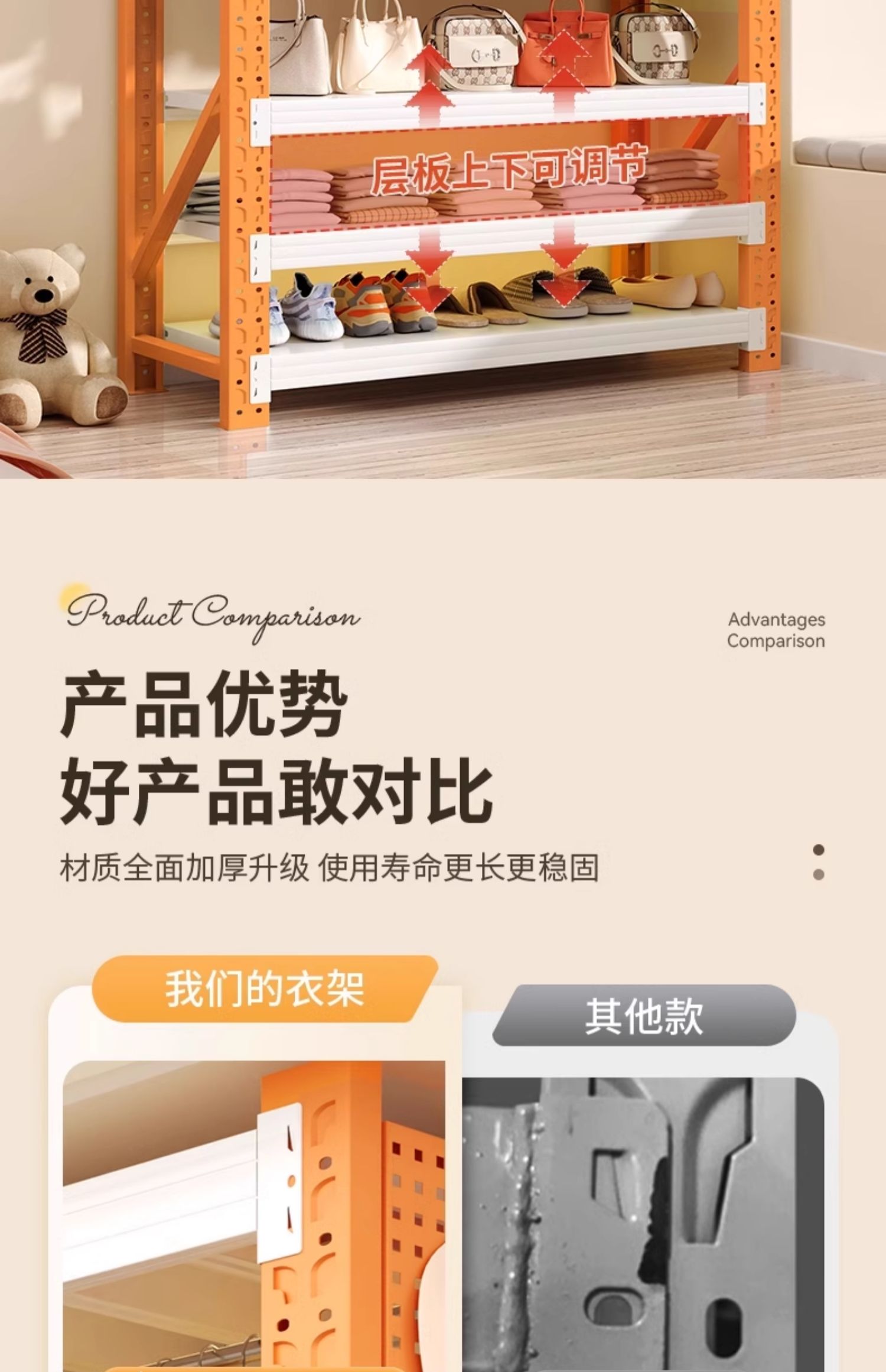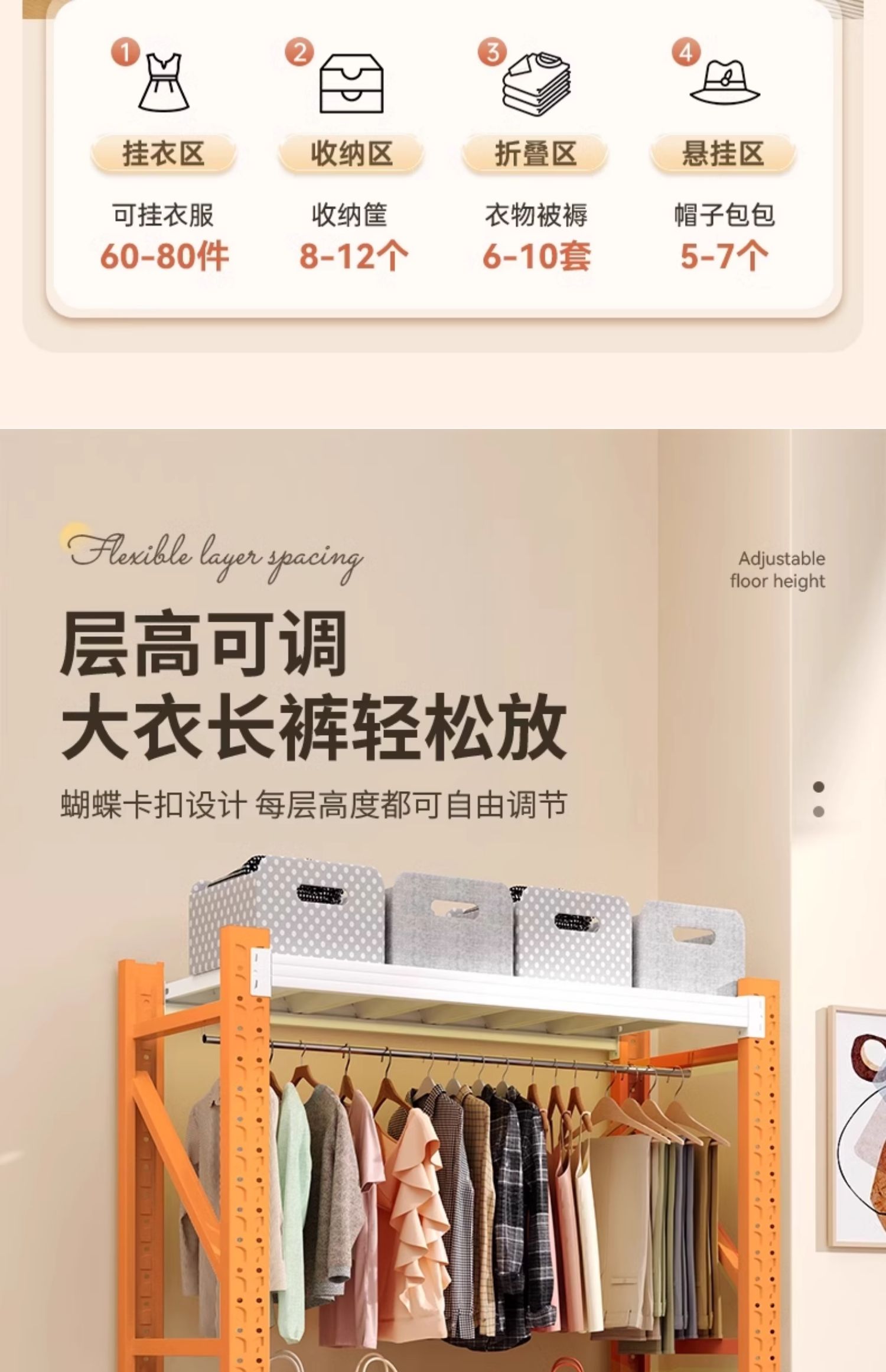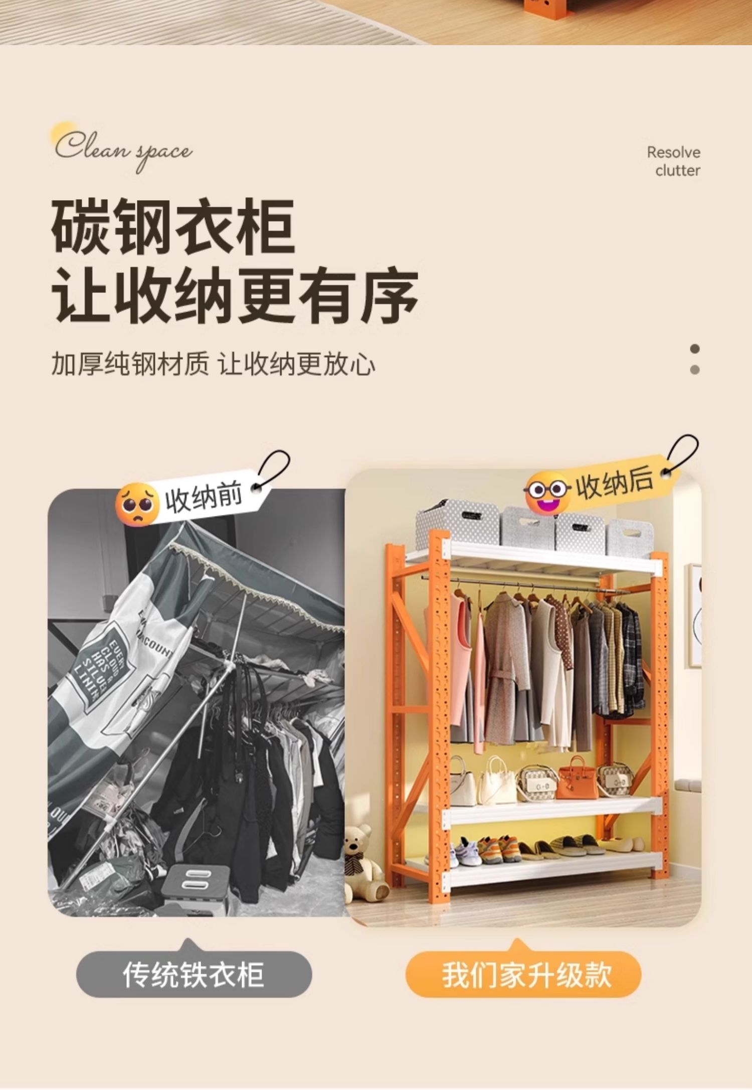 가정용 선반 옷걸이 간단한 조립 개방형 옷걸이 강철 저장 랙 먼지 커튼 다층 저장 선반