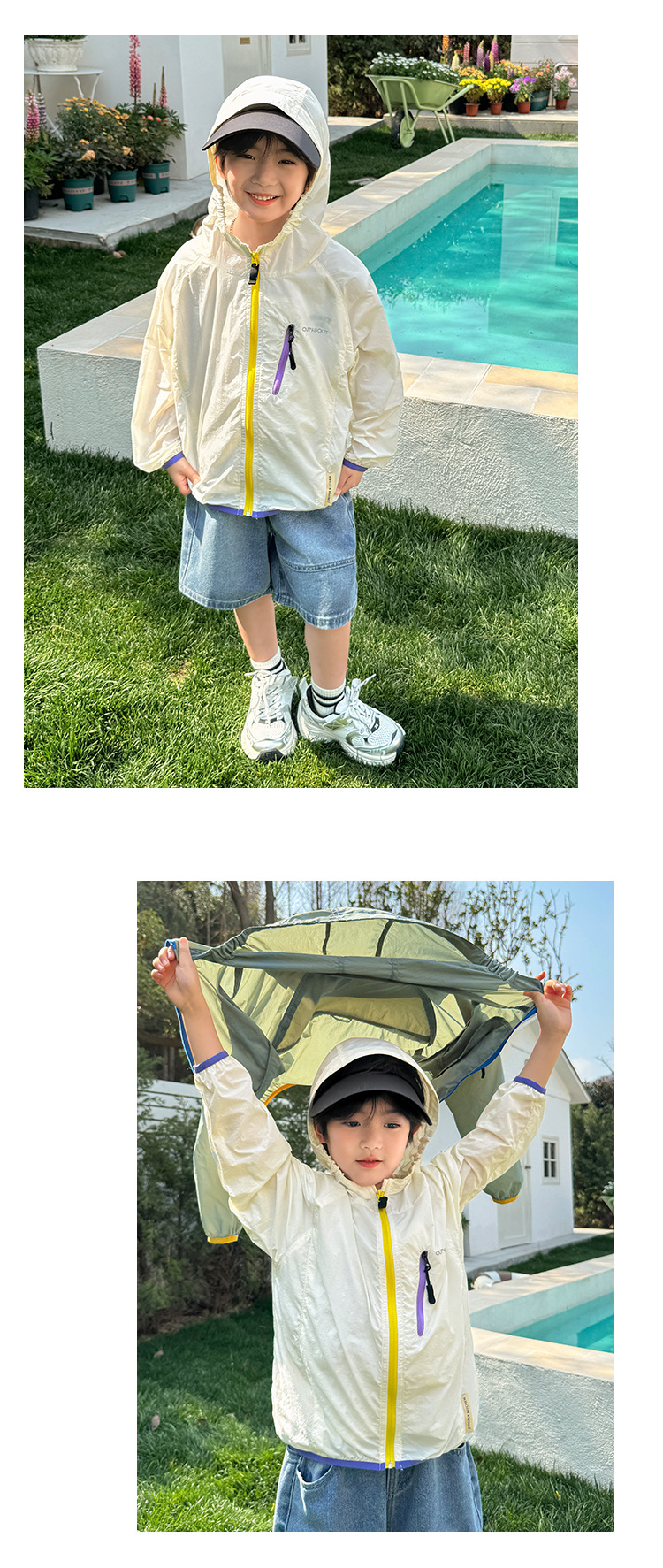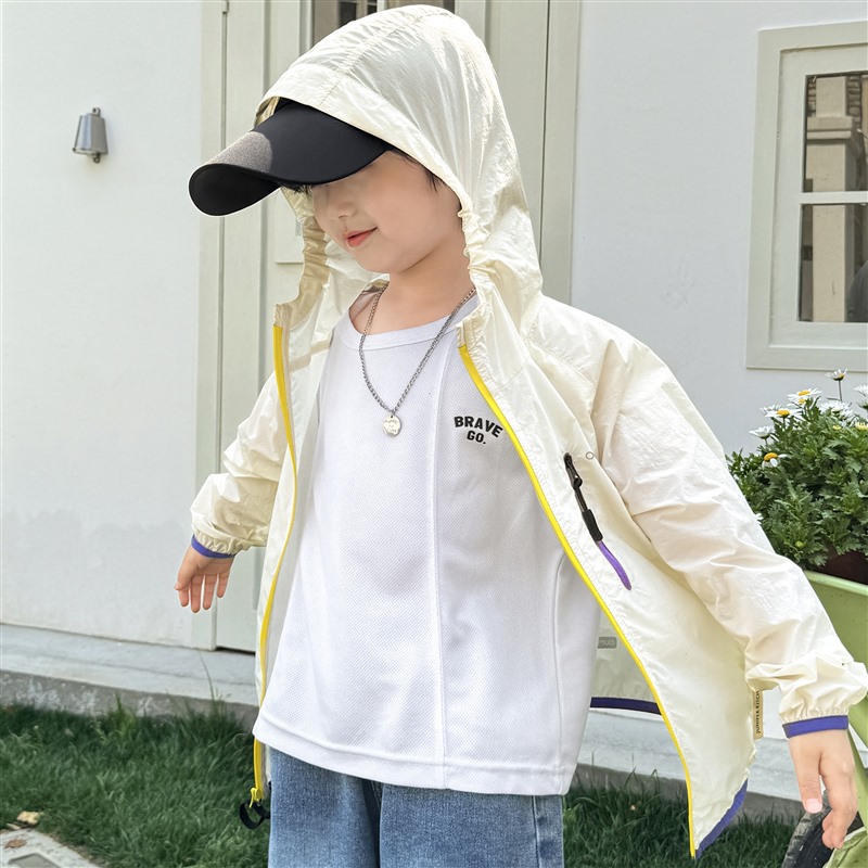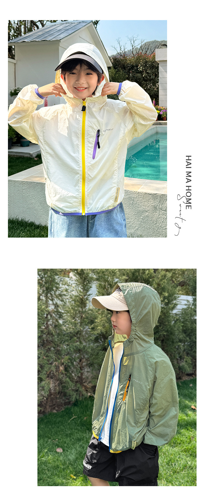 소년과 소녀 후드 선 스크린 코트 여름 옷 UPF50 Haima 홈 2025 여름 새로운 중다 어린이스토어 가기