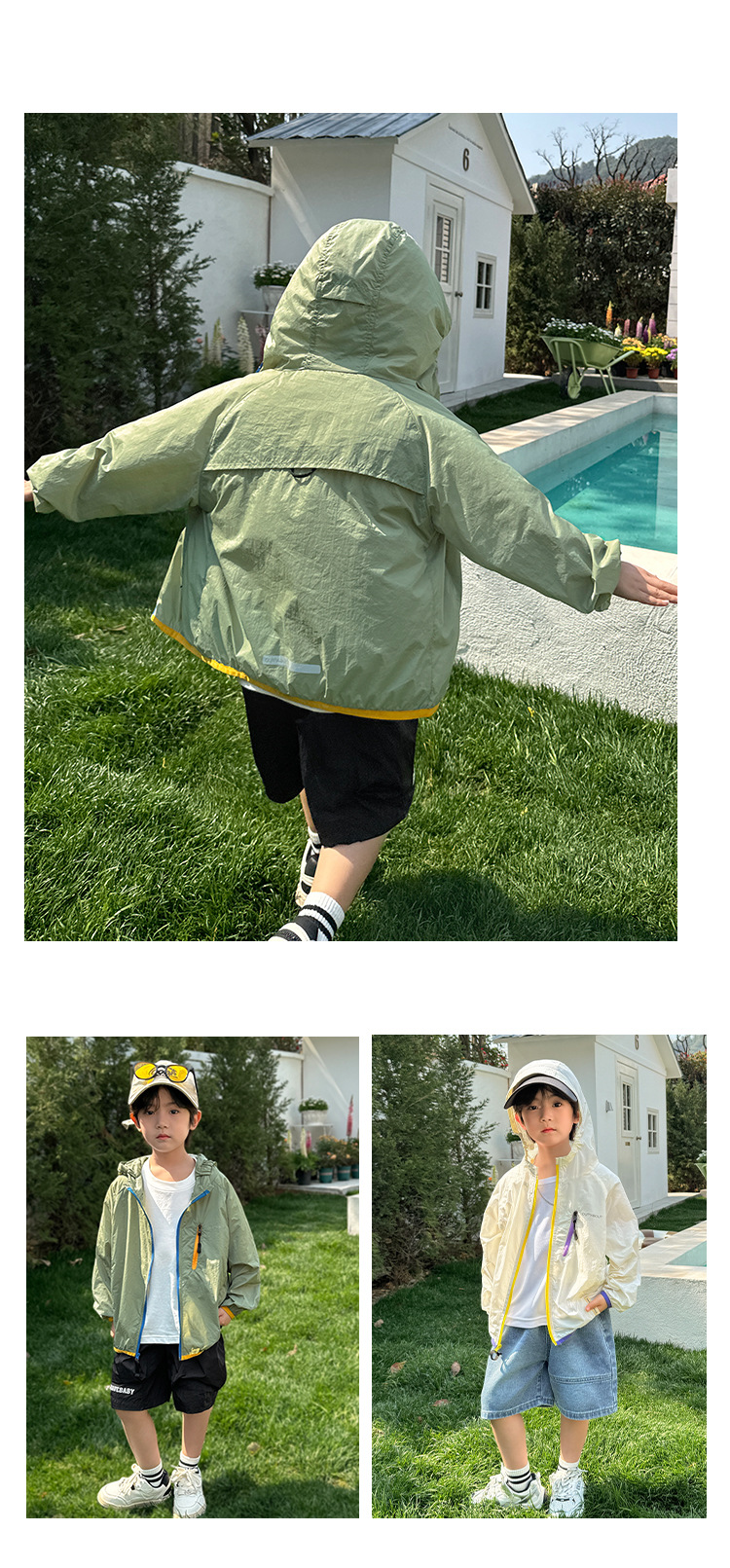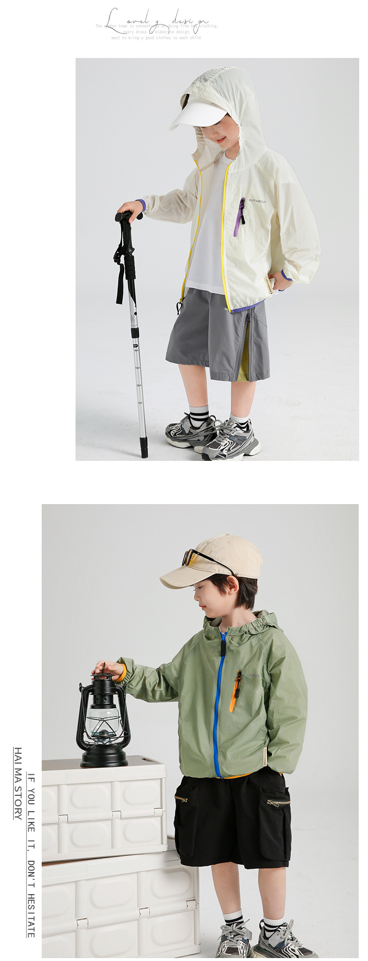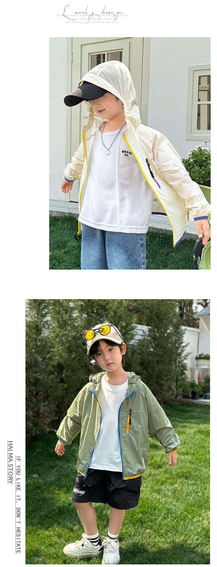 소년과 소녀 후드 선 스크린 코트 여름 옷 UPF50 Haima 홈 2025 여름 새로운 중다 어린이