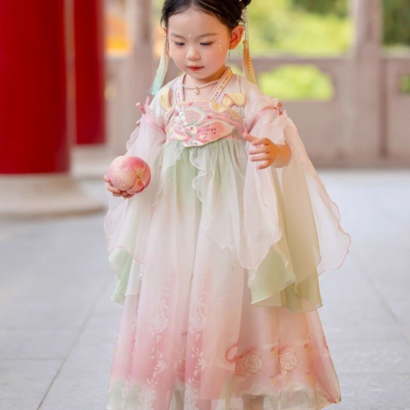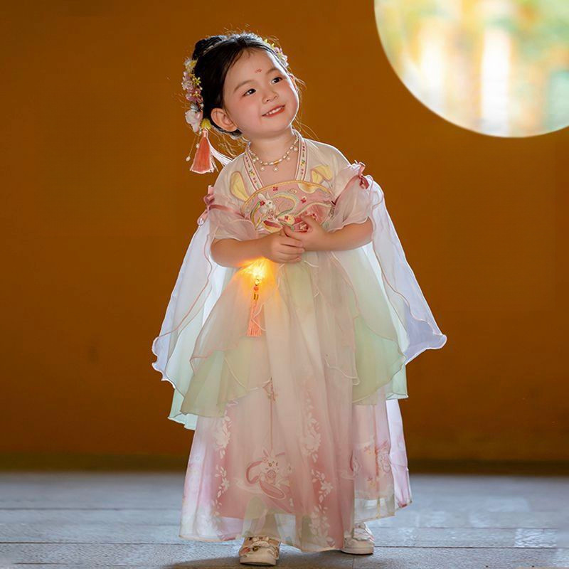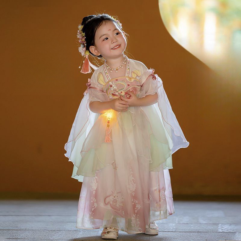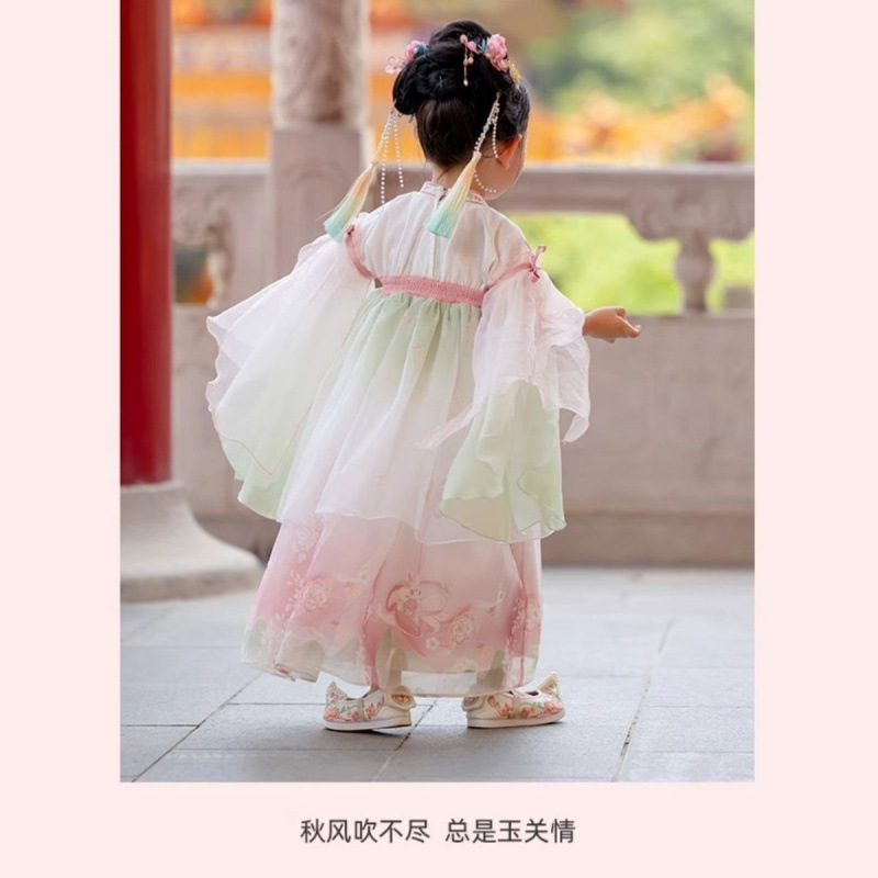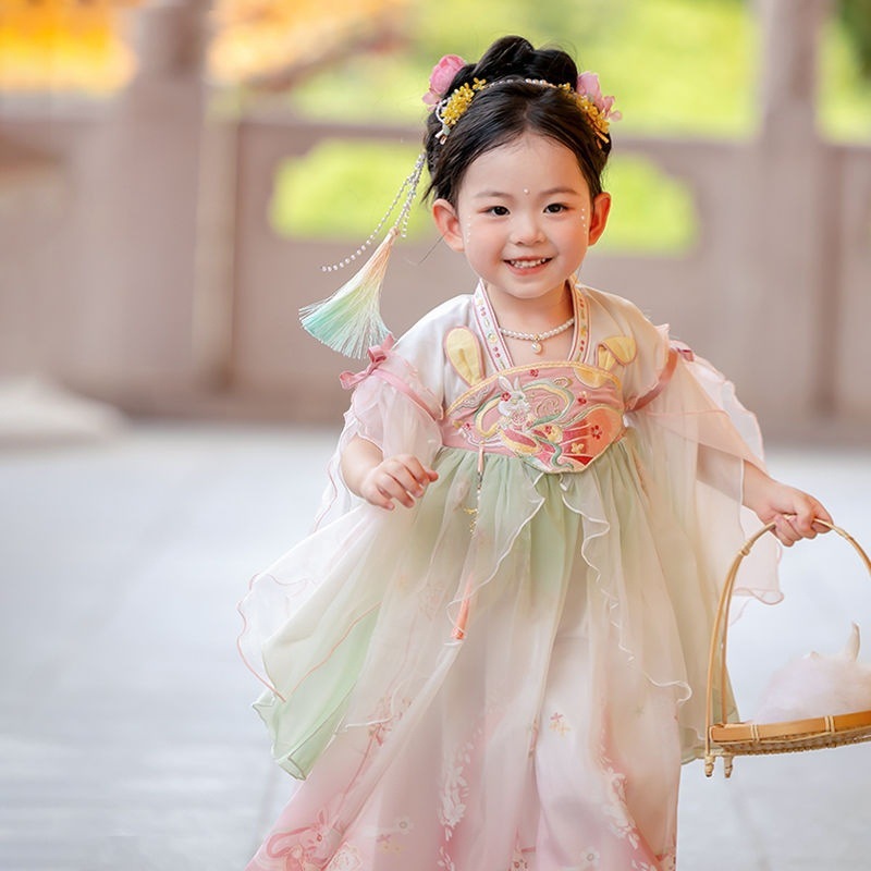 Hanfu Girls 봄, 가을 2025 새로운 어린이 가을, 겨울 긴팔 의상 스커트 어린 소녀 토끼 드레스