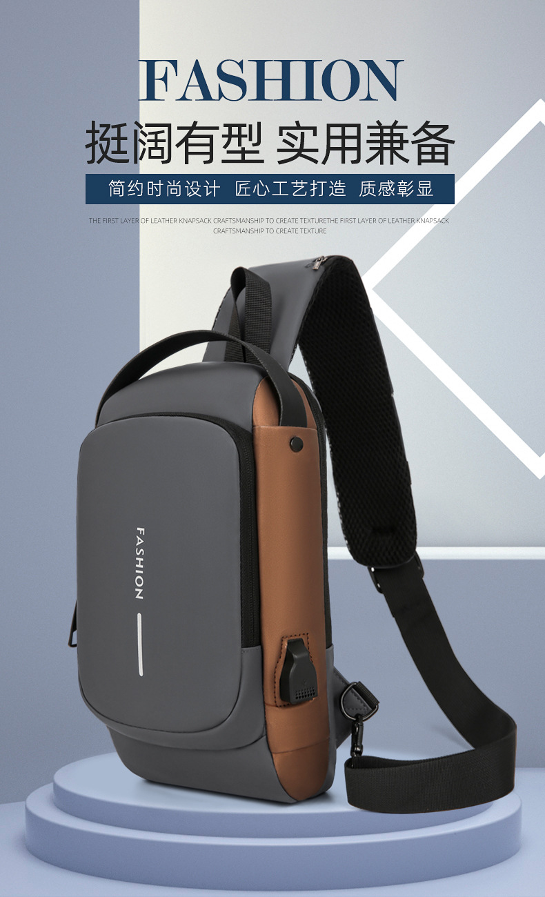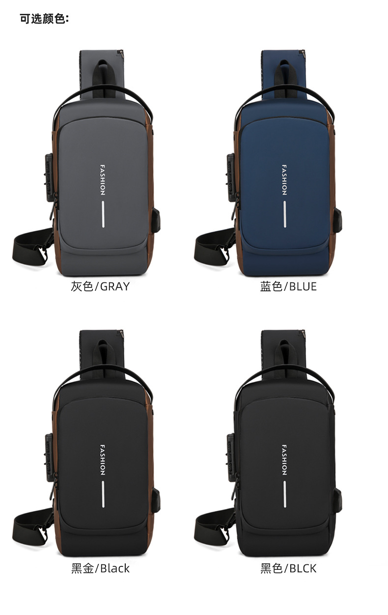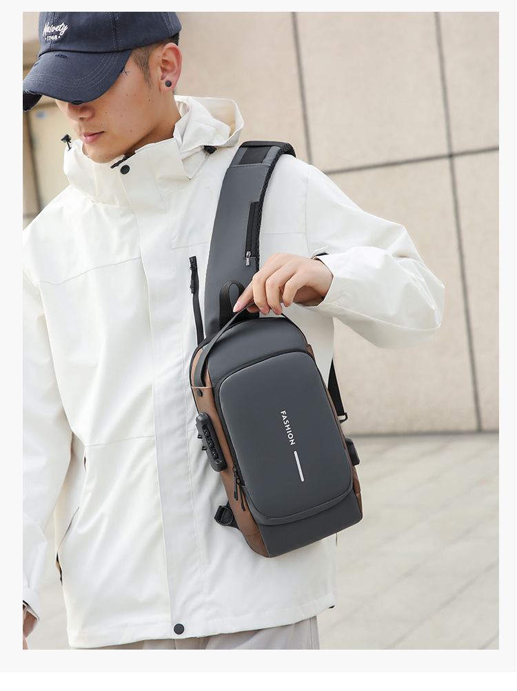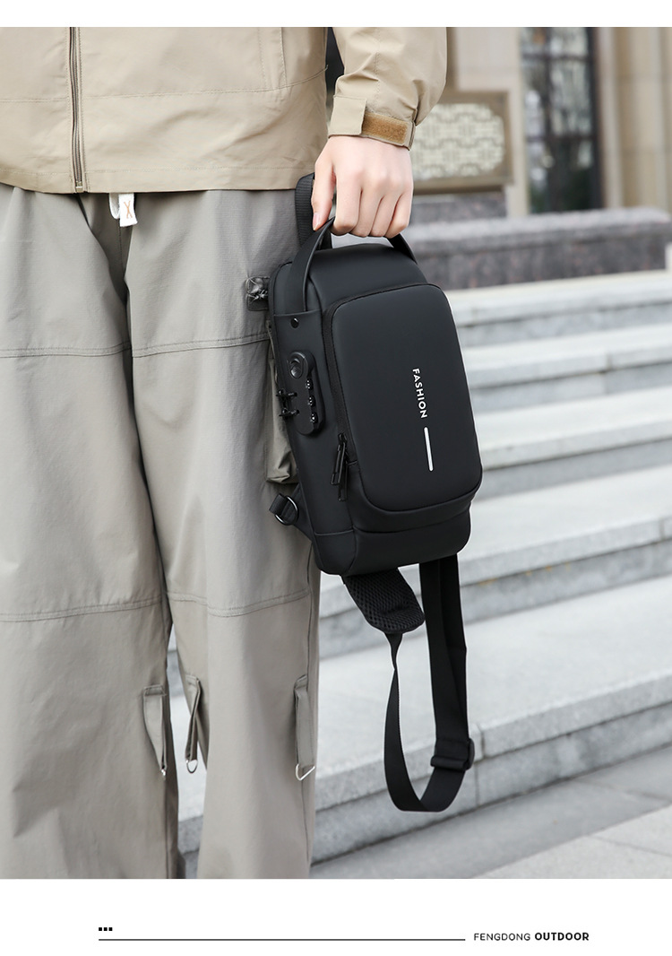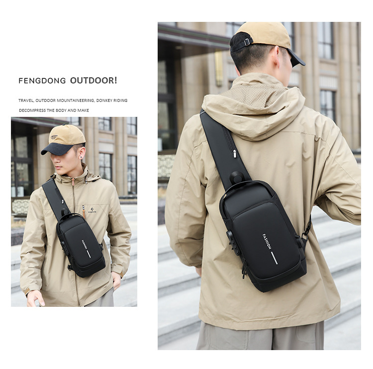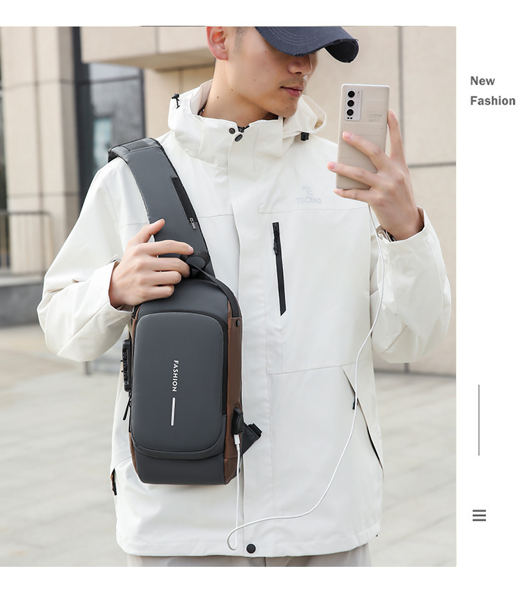 도매 새로운 남성의 다기능 어깨 가방 크로스 바디 잠금 스포츠 자동차 가방 USB 간단한 도난 방지 가슴 가방