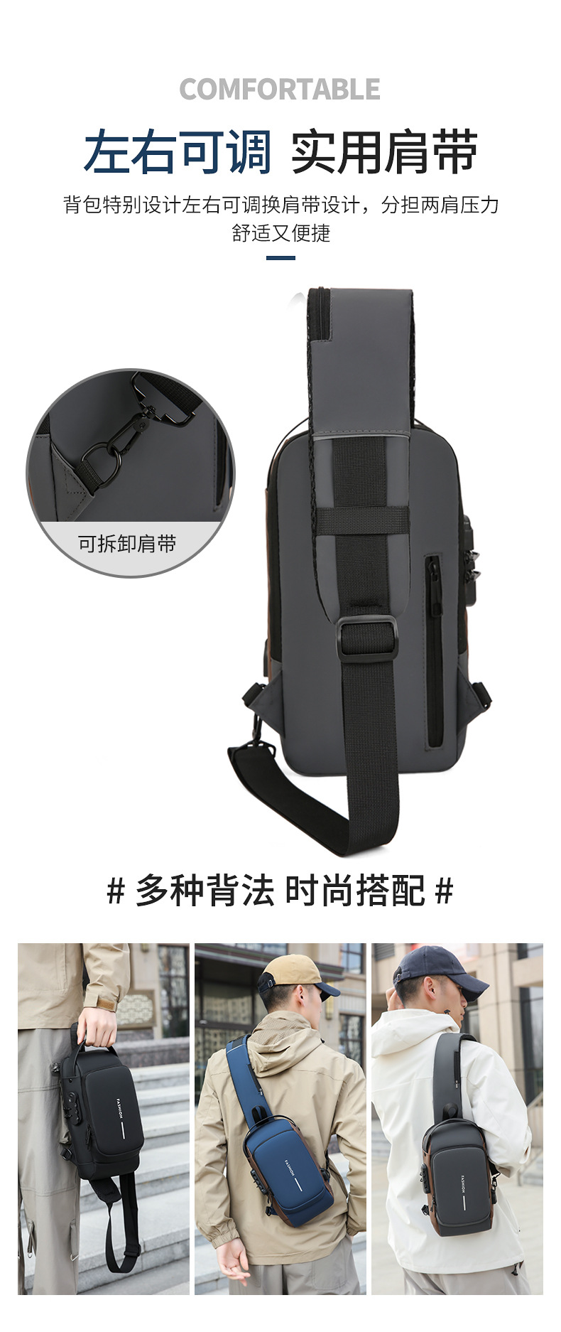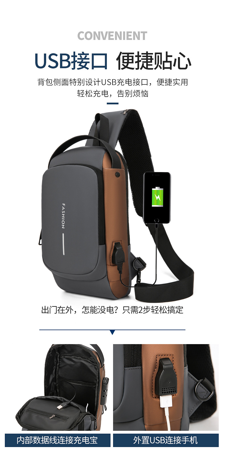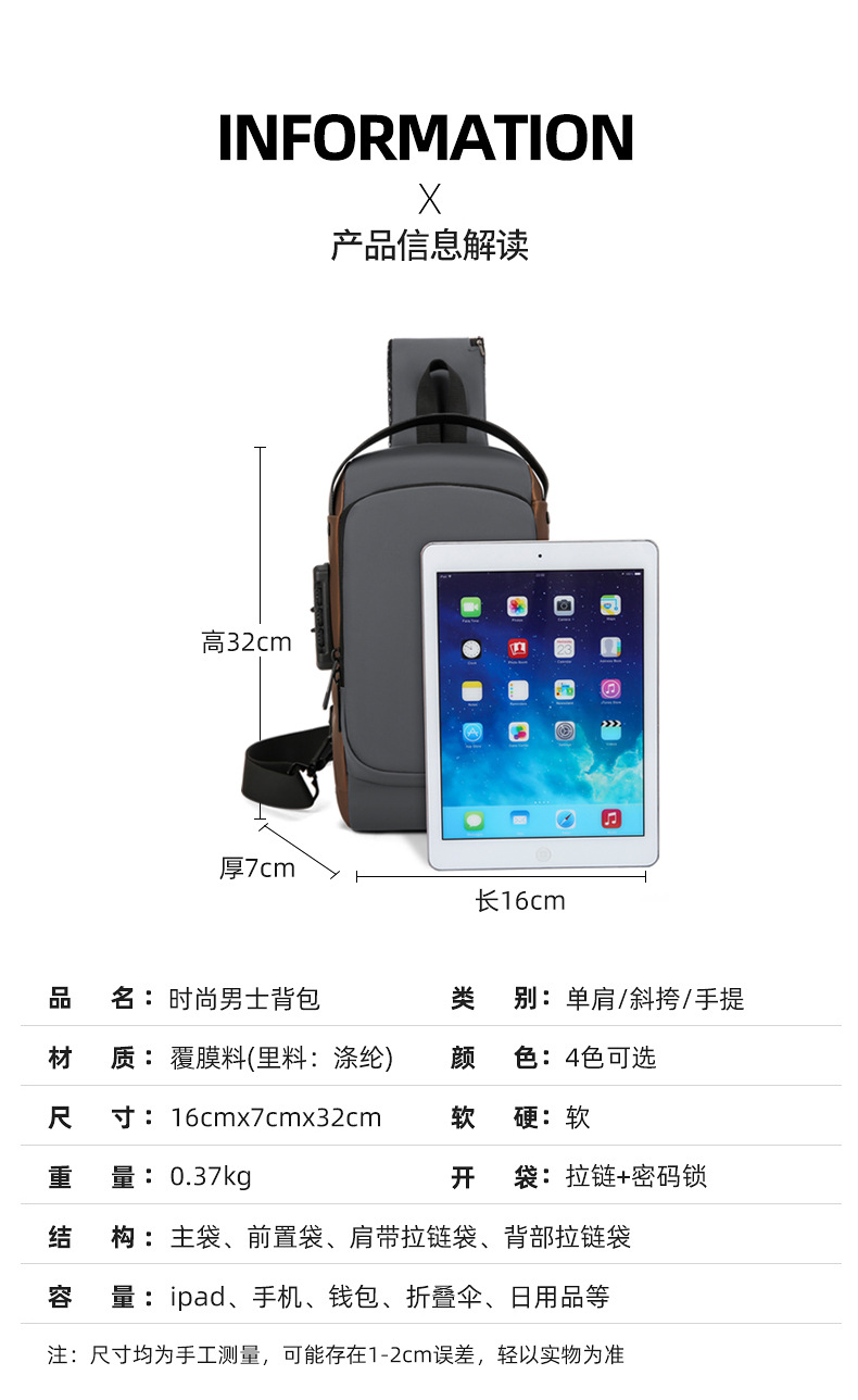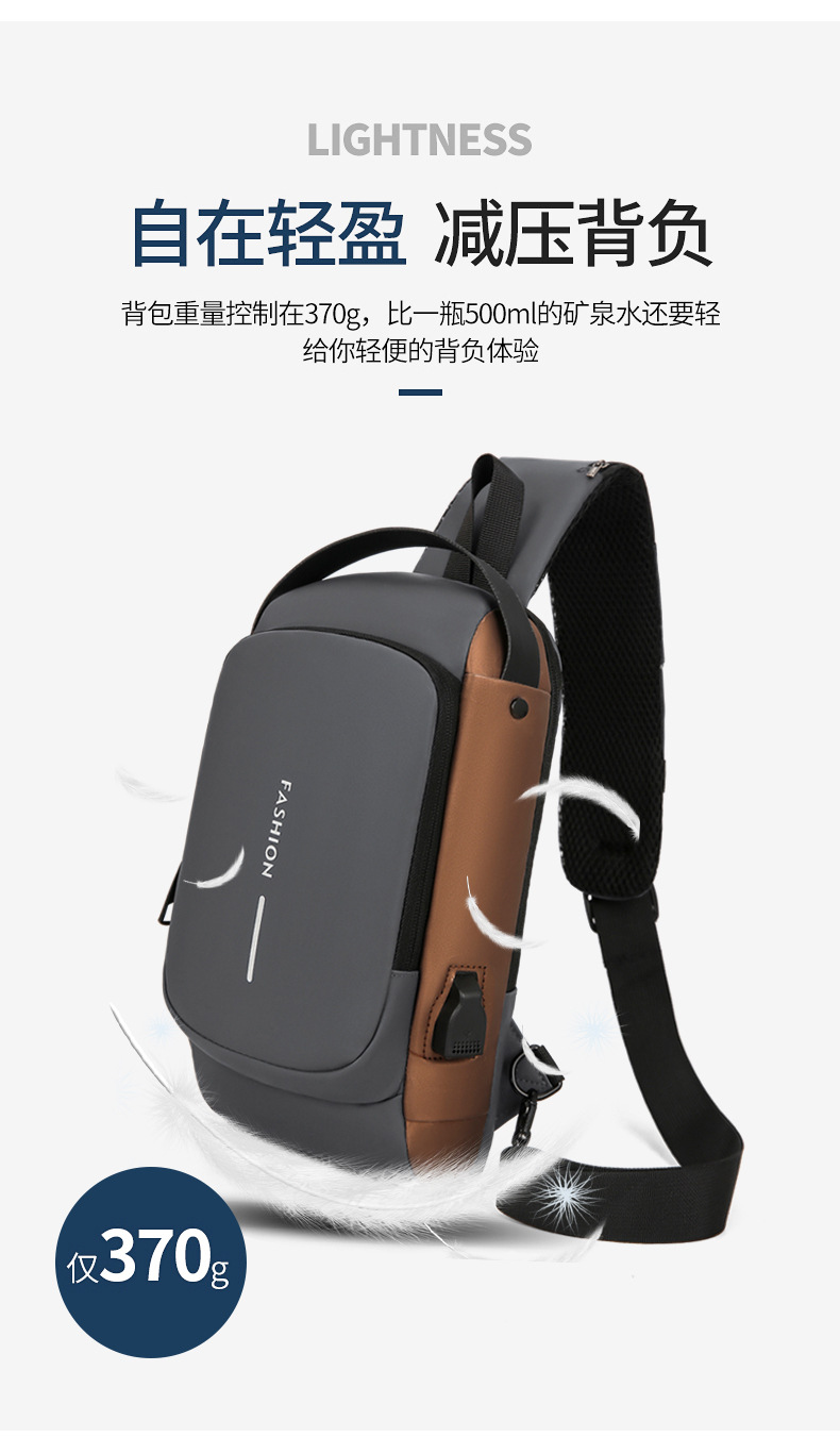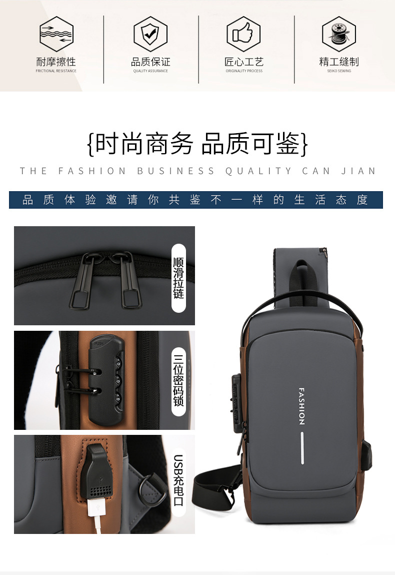 도매 새로운 남성의 다기능 어깨 가방 크로스 바디 잠금 스포츠 자동차 가방 USB 간단한 도난 방지 가슴 가방