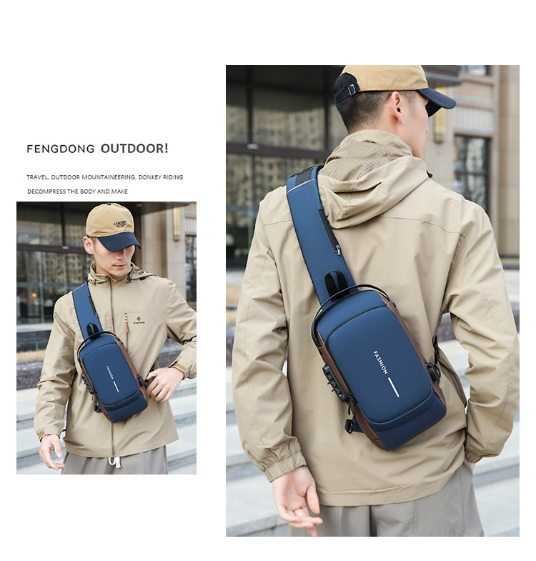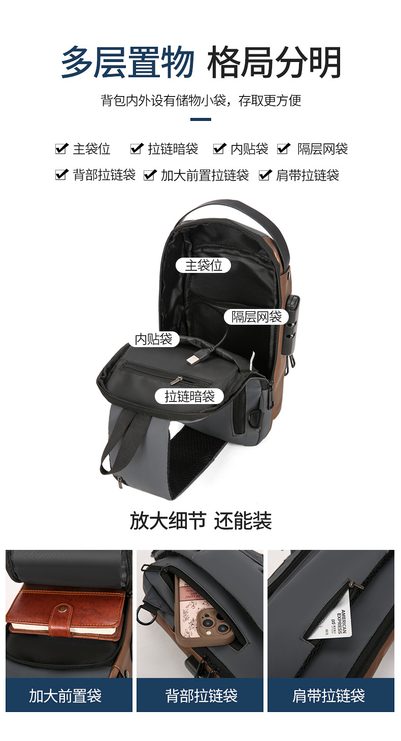 도매 새로운 남성의 다기능 어깨 가방 크로스 바디 잠금 스포츠 자동차 가방 USB 간단한 도난 방지 가슴 가방스토어 가기