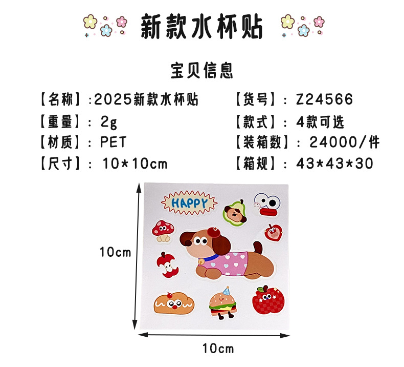 새로운 재고 만화 창의적 귀여운 물컵 스티커 토끼 검은 고양이 강아지 영어 스티커 장식 스티커 도매