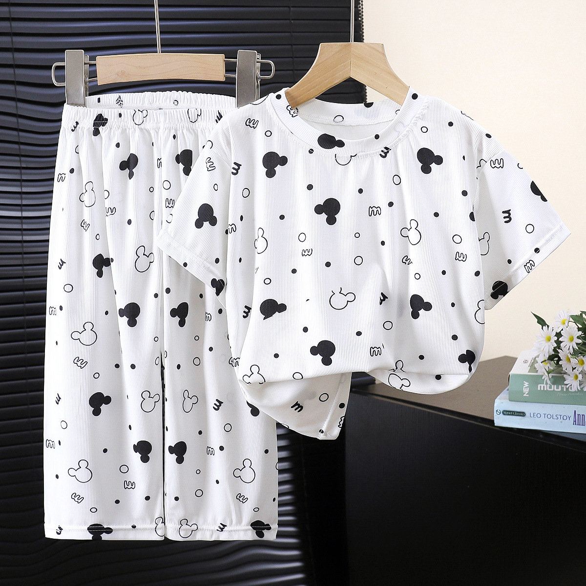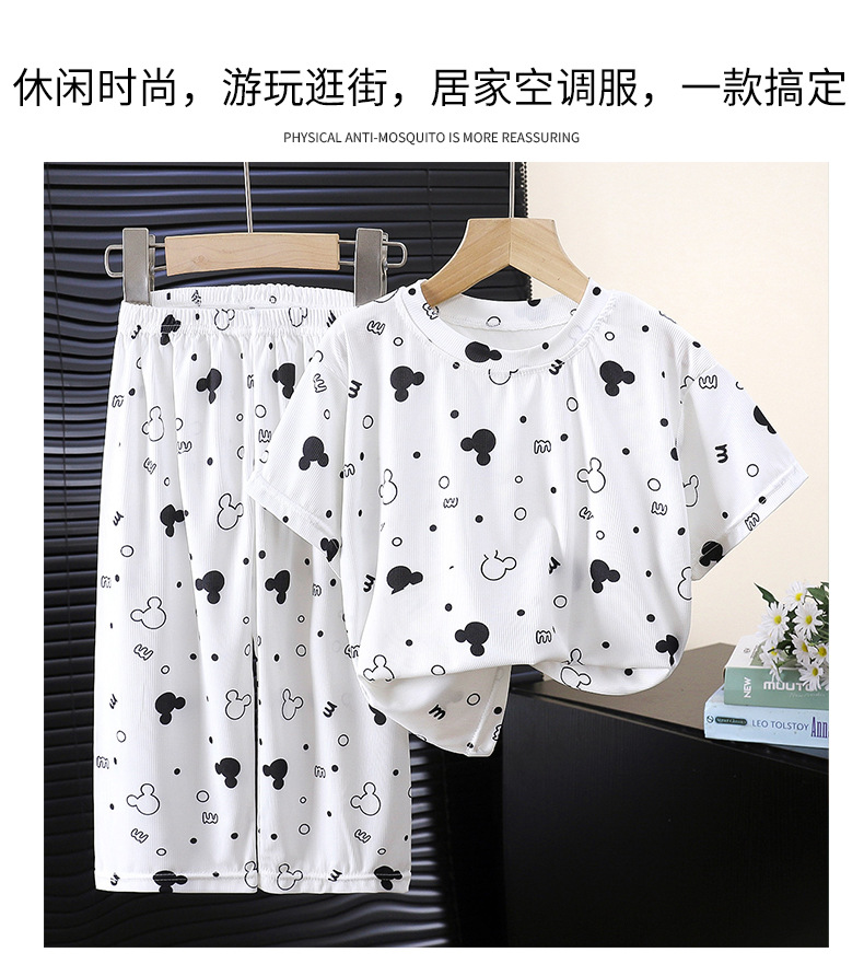 어린이 잠옷 세트 소년 여름 얇은 홈 의류 여성용 아이스 실크 홈 에어컨 의류 여름 세트 도매스토어 가기