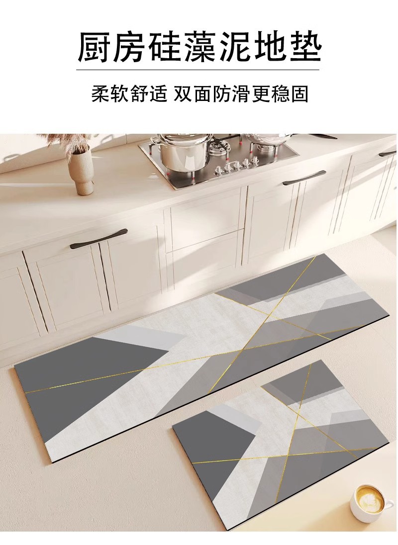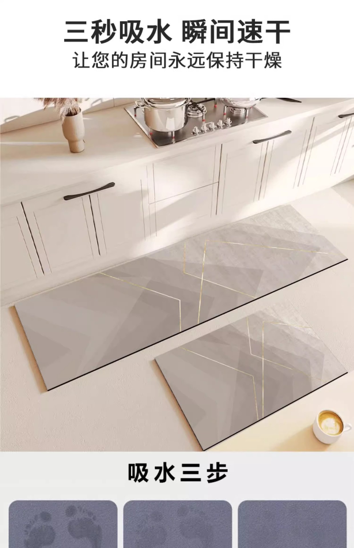 Diatom 진흙 주방 바닥 매트 고급 감지 먼지 방지 미끄럼 방지 매트 긴 2 피스 발 매트 가정용 빠른 건조 흡수 바닥 매트스토어 가기