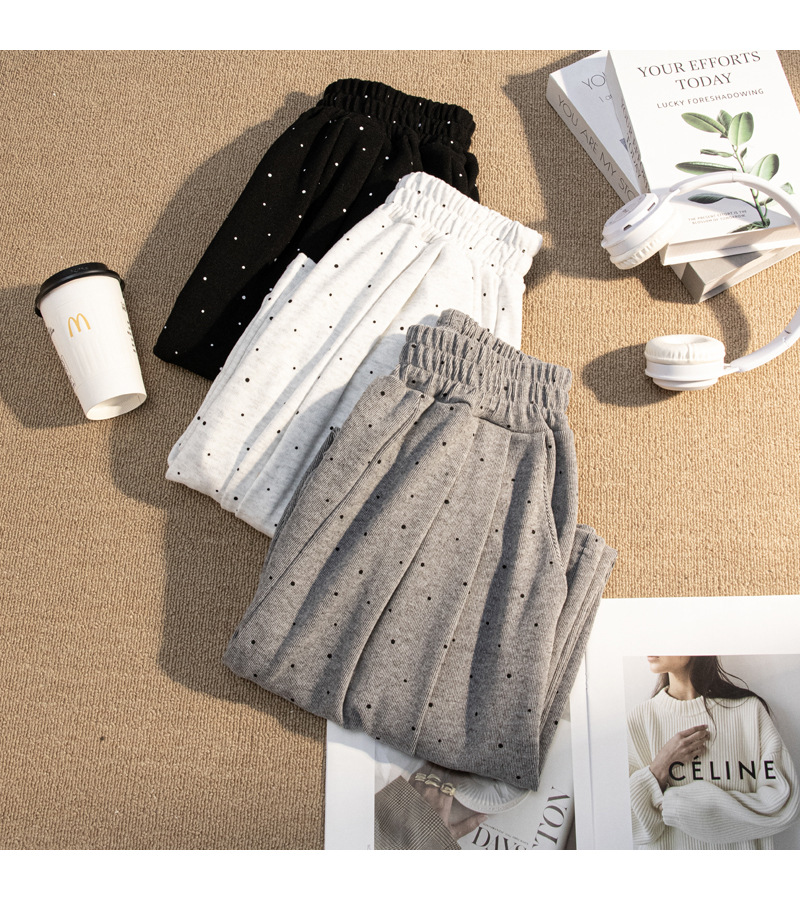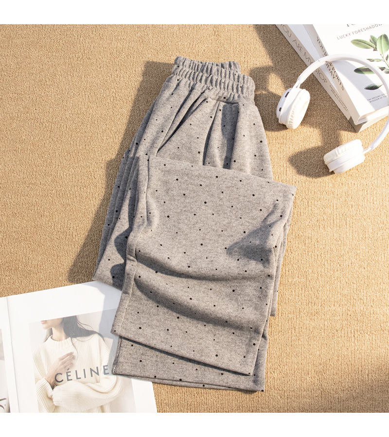 봄 여름 가을 새로운 폴카 도트 플러스 사이즈 넓은 다리 바지 남자와 여자 같은 바지 높은 허리 캐주얼 스트레이트 바지스토어 가기