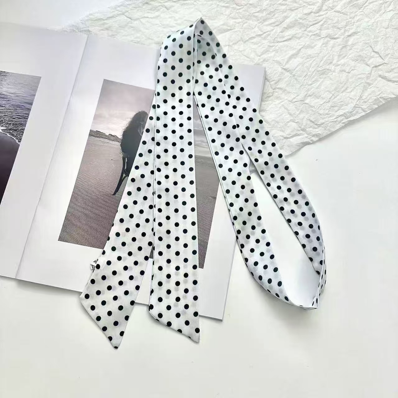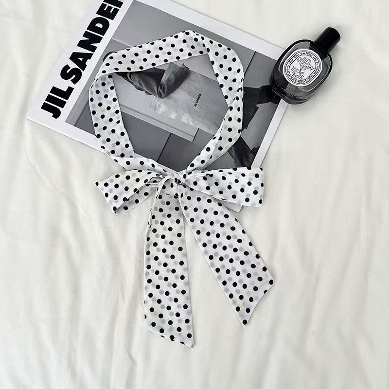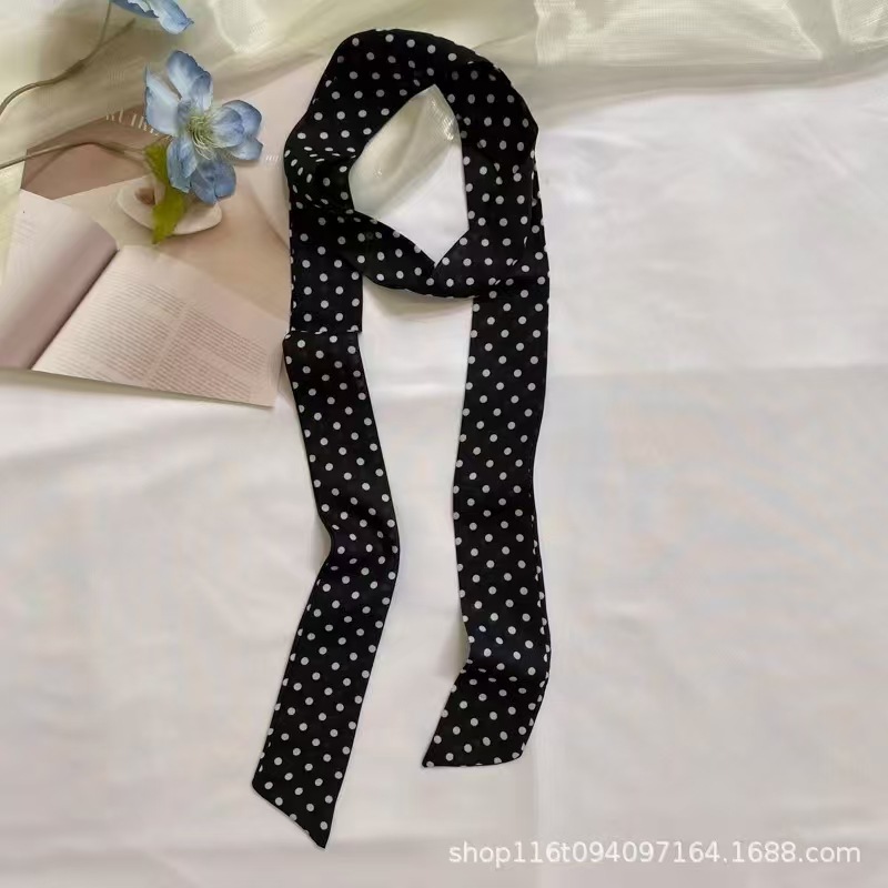 프렌치 스타일 블랙 롱 폴라 도트 스카프 여성용 하이 엔드 라이트 럭셔리 올 매치 넥 헤어 밴드 얇은 스카프 액세서리스토어 가기