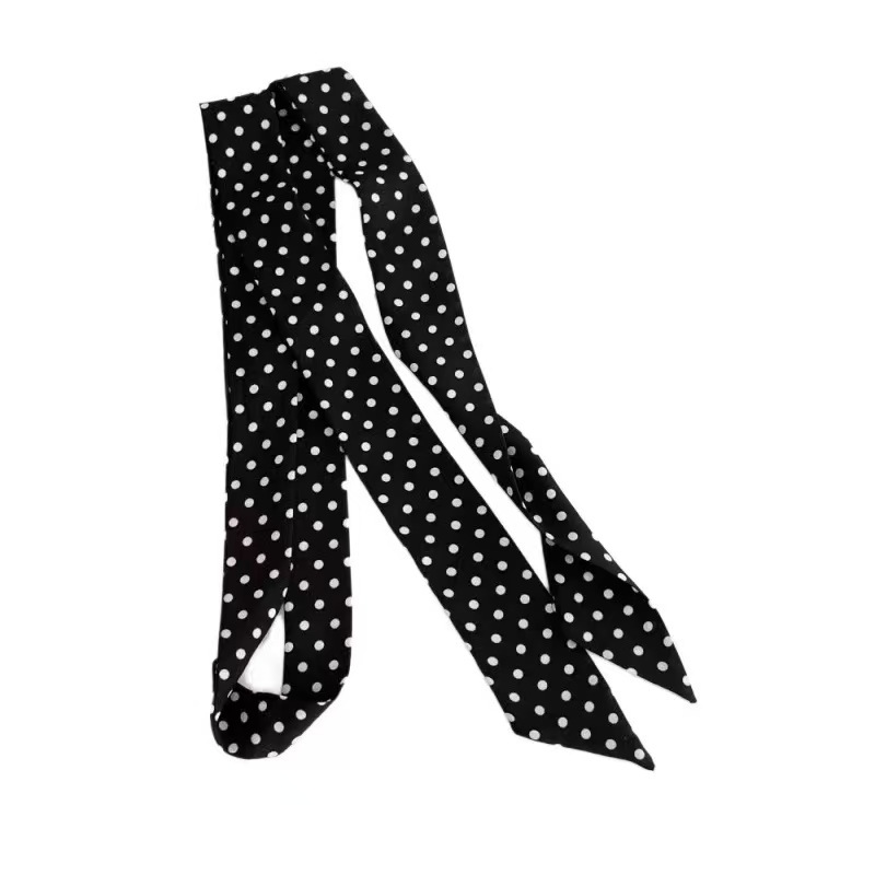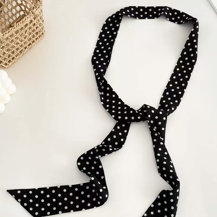 프렌치 스타일 블랙 롱 폴라 도트 스카프 여성용 하이 엔드 라이트 럭셔리 올 매치 넥 헤어 밴드 얇은 스카프 액세서리
