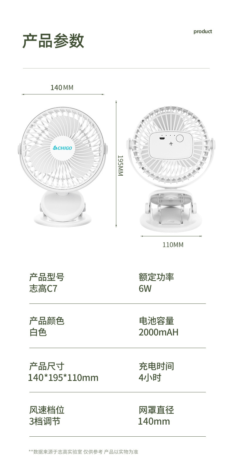 Chigo 작은 팬 USB 충전 데스크 클립 팬 사무실 데스크탑 작은 홈 기숙사 팬 핑크스토어 가기