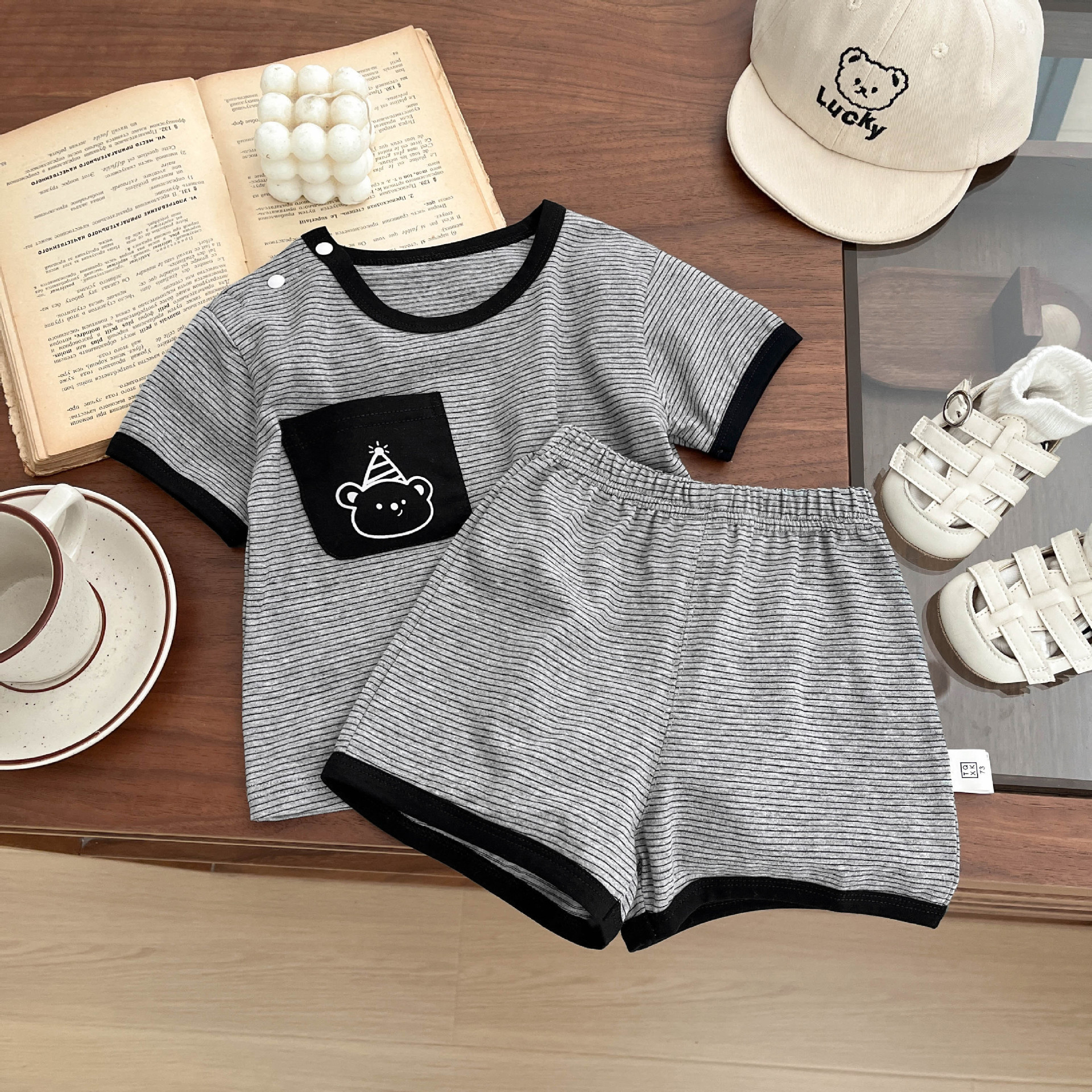 한국 아동복 소년 티셔츠 세트 2025 년 새 한국 스타일 아기 캐주얼 서양식 얇은 짧은 소매 반바지스토어 가기