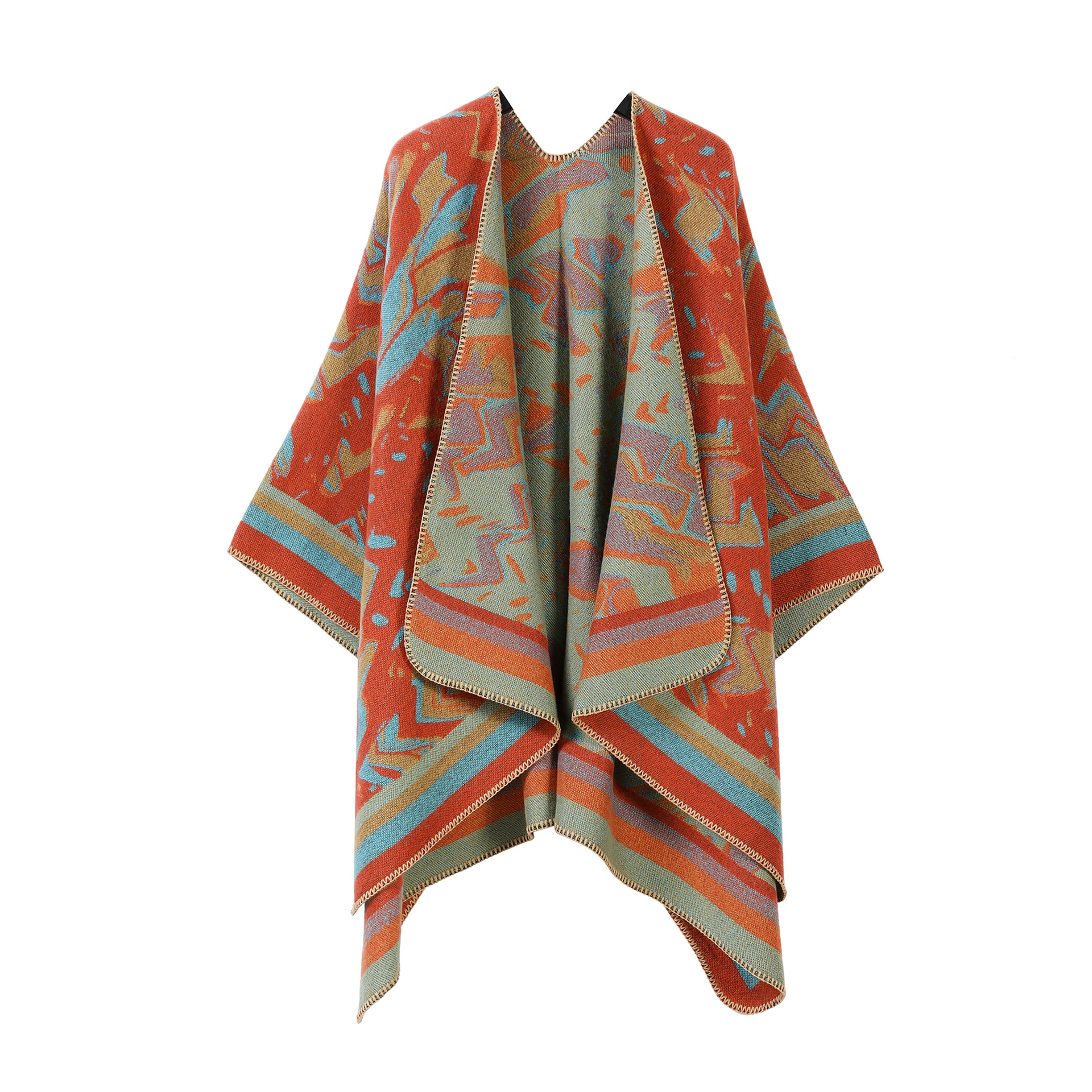새로운 기하학적 민족 스타일 목도리 니트 하이 스타일 망토 서부 사천 윈난 여행복 사진 모조 캐시미어 여성