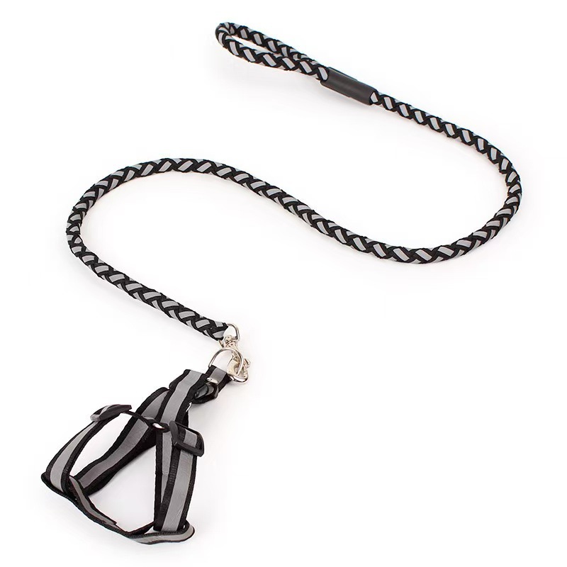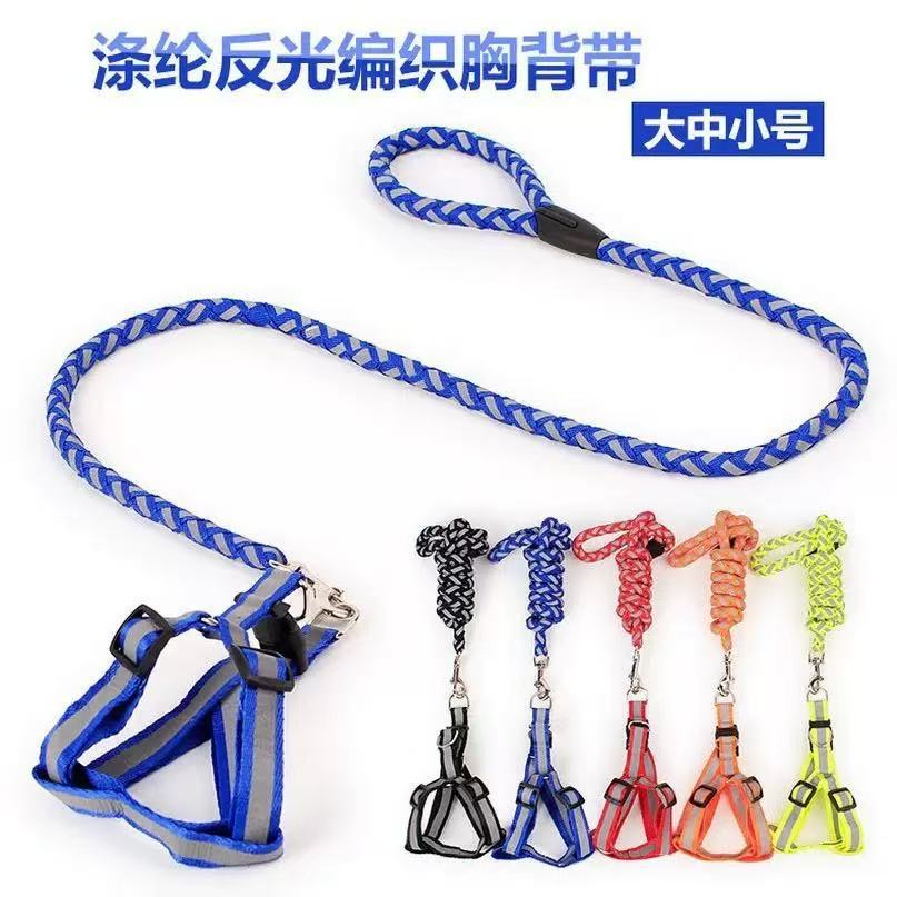 국경 간 인기 판매 애완견 가죽끈 세트 폴리에스테르 반사 직조 하네스 가죽끈 반사 개 산책 가죽끈 개 가죽끈