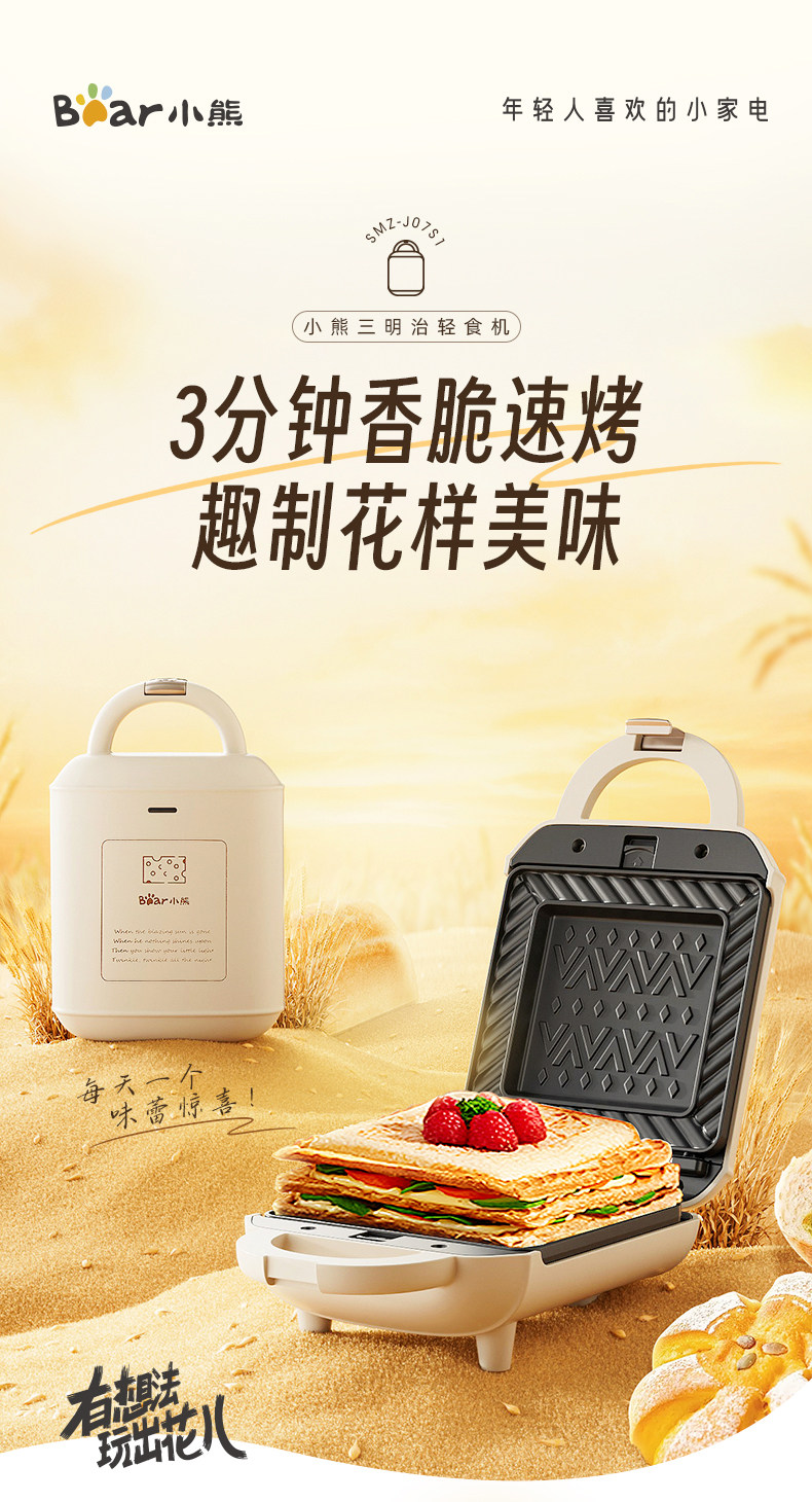 곰 아침 식사 기계 샌드위치 가정용 소형 와플 기계 완전 자동 토스트 새로운 다기능 토스트 기계스토어 가기
