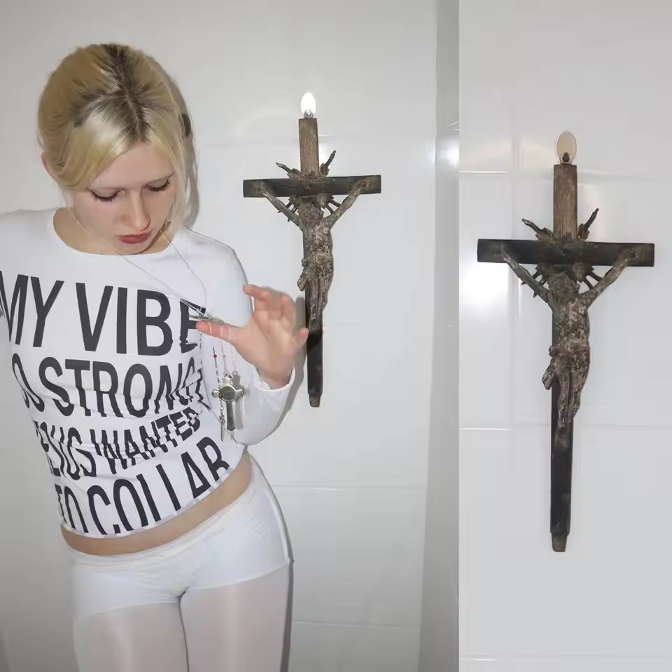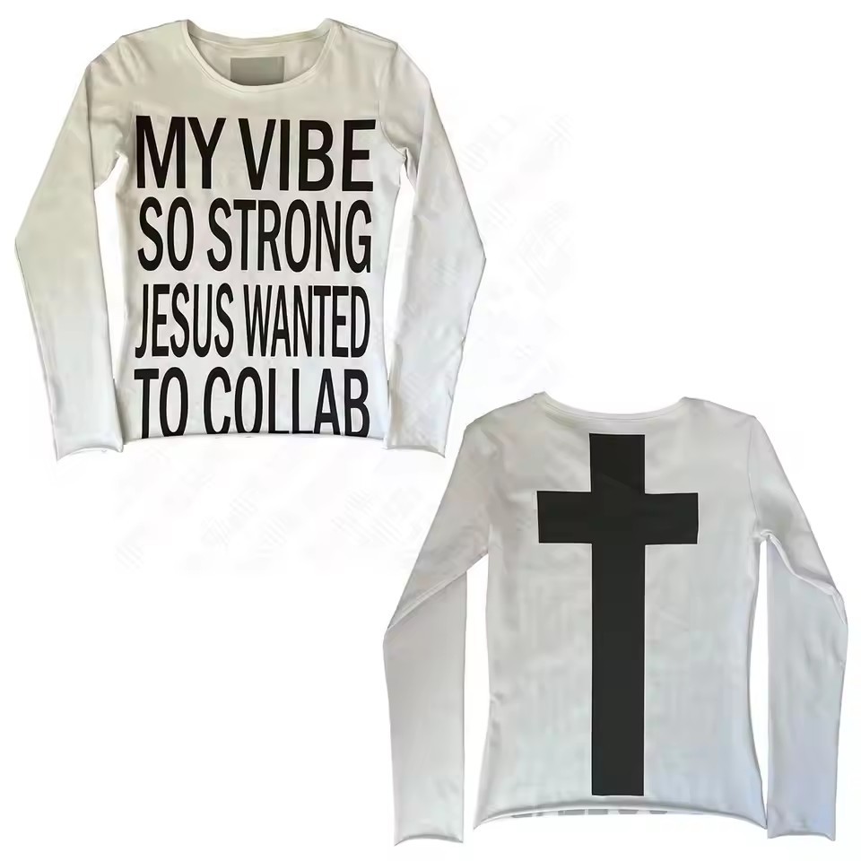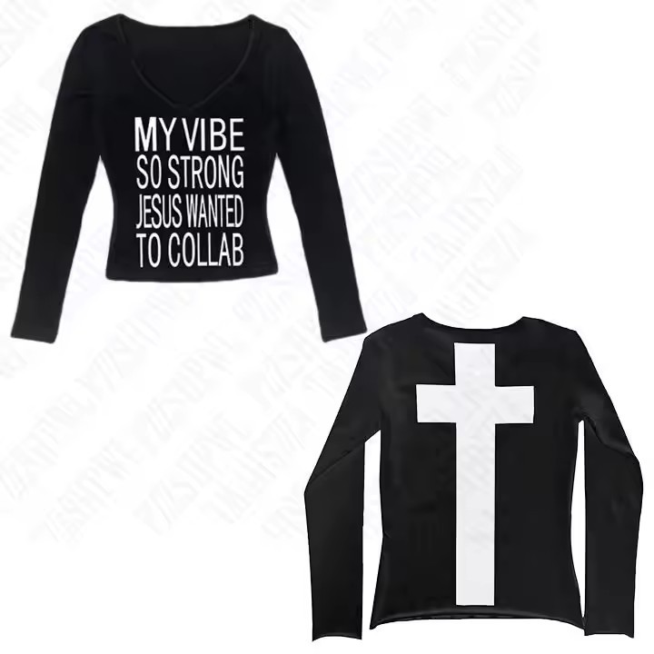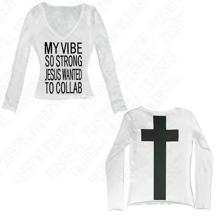 유럽과 미국의 패션 디자인 감각 전면 및 후면 투웨어 편지 프린트 긴 소매 티셔츠 여성용 복고풍 슬림 핏 이너 탑스토어 가기
