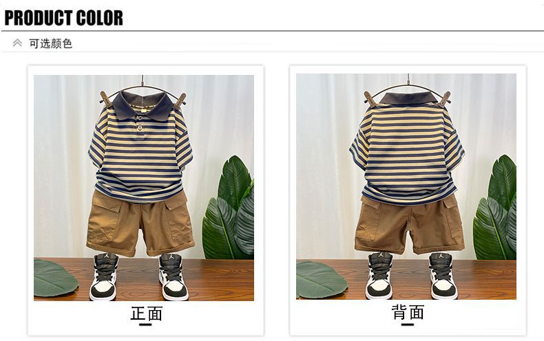 남자들의 여름 세트 세련된 줄무늬 폴로 셔츠 23 새로운 어린이 옷 잘 생긴 유행 투피스 세트
