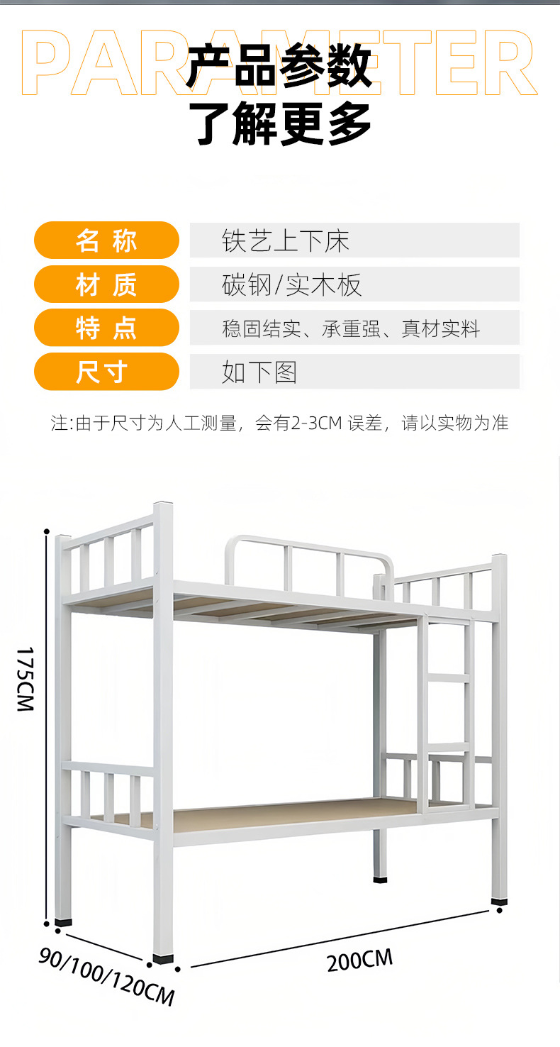 철제 이층침대, 학생기숙사 건설현장 직원 철제 프레임 침대, 폐쇄형 프로파일 침대, 높낮이 이층침대