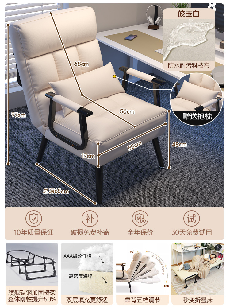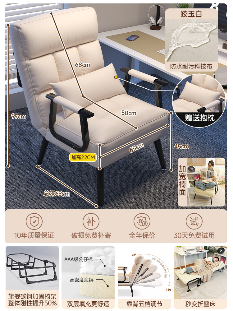 • 업그레이드되고 안정적이며 흔들리지 않음 [두꺼운 이중 충전재] 폭 65CM - 밝은 옥백색 - 기술 천 등받이 5단계 조절 가능