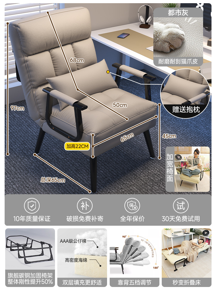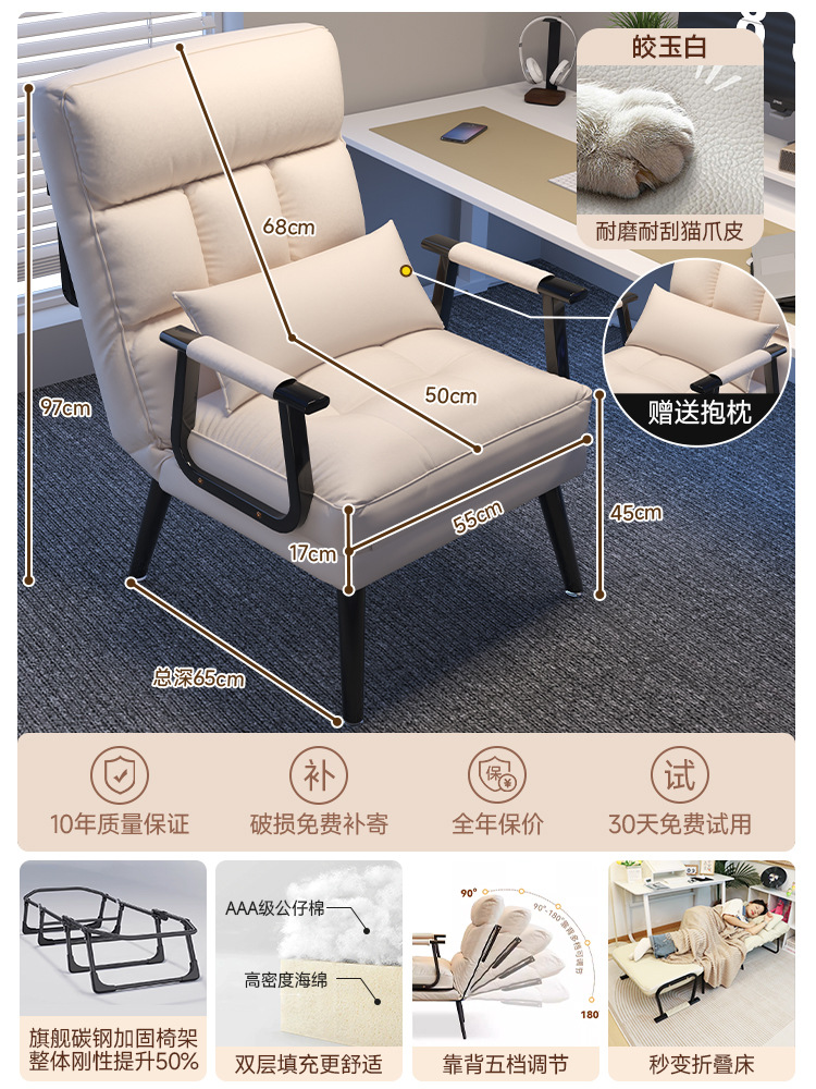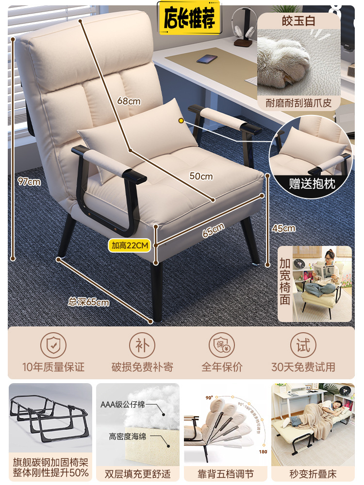 • 점장님이 개인적으로 추천하는 모델 [넓어지고 두꺼워지고 강화됨] 오래 앉아도 피곤하지 않음 - 조유 화이트 고양이 긁는 등받이 5단계 조절