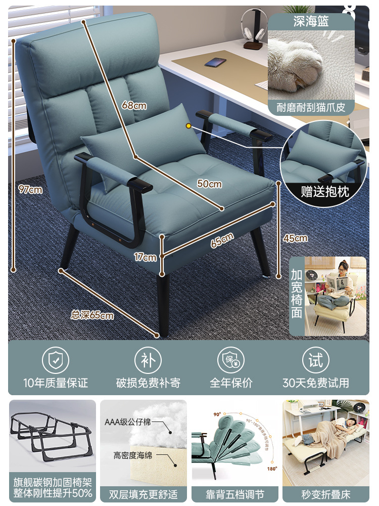 • 업그레이드되고 안정적이며 흔들리지 않습니다. [두꺼운 이중 충전재] 폭 65CM - 심해 바구니 - 기술 천 등받이 5단계 조절