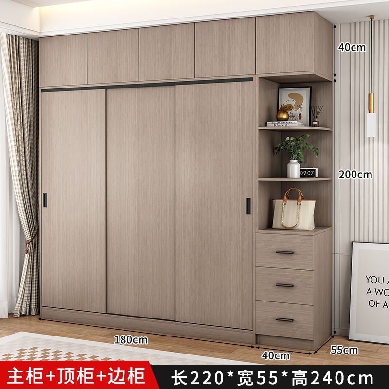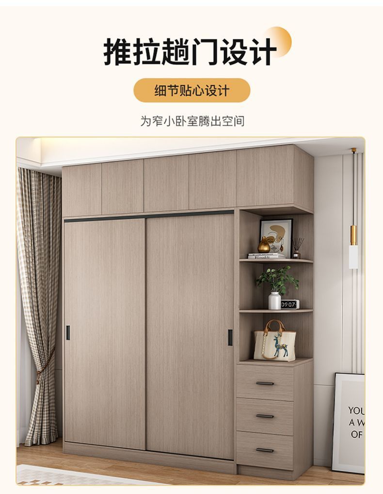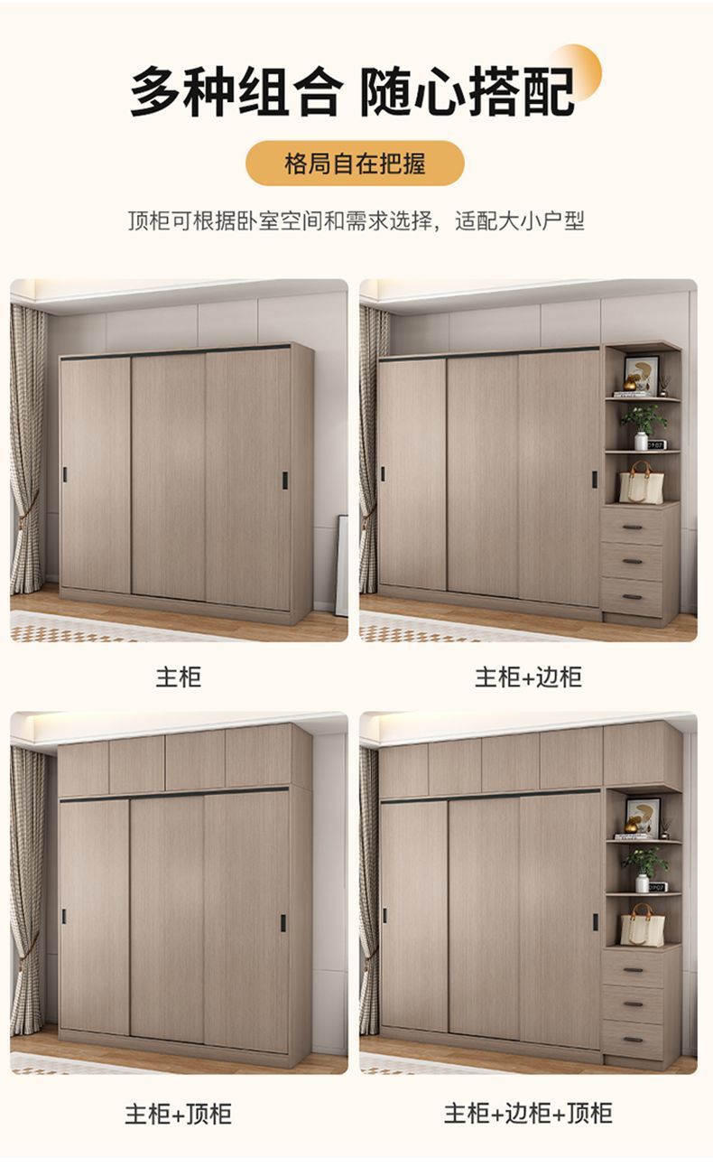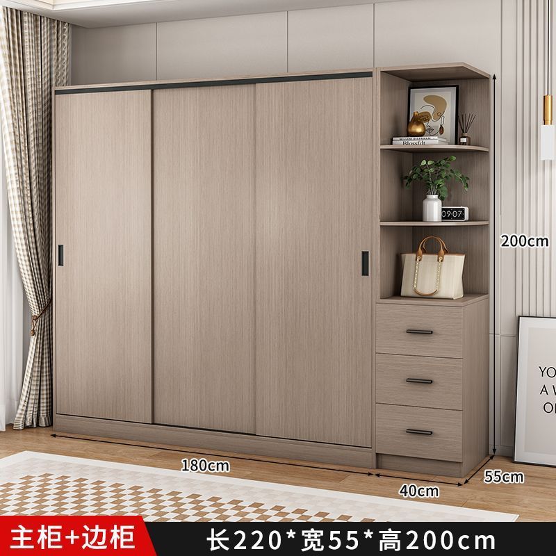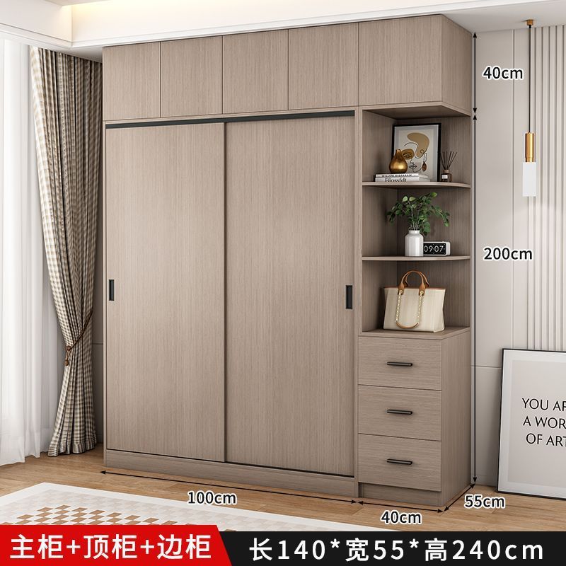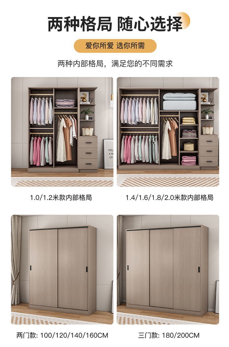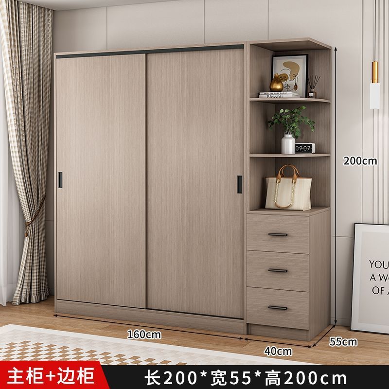 단단한 나무 슬라이딩 도어 옷장 가정용 침실 생태 보드 간단한 조립 임대 룸 두꺼운 코트 캐비닛