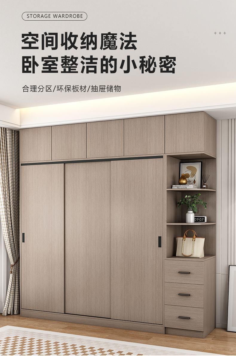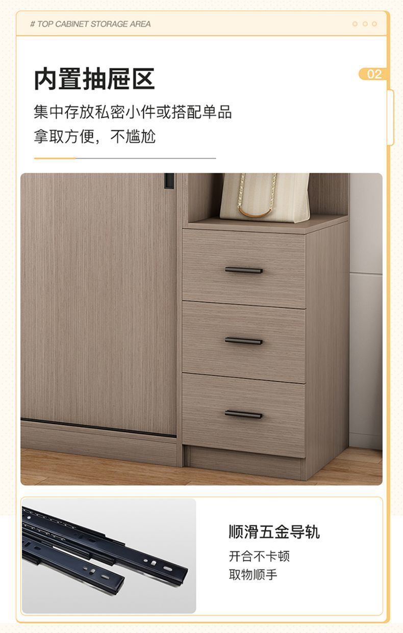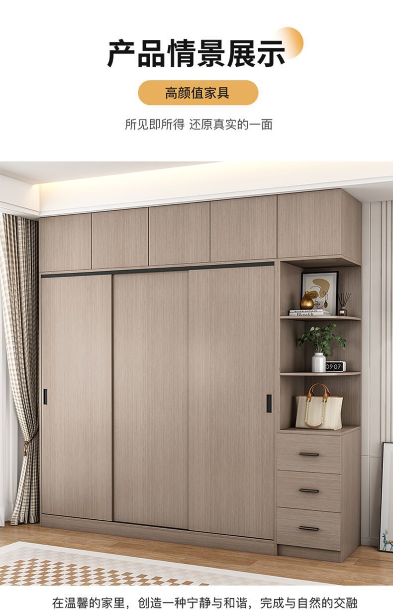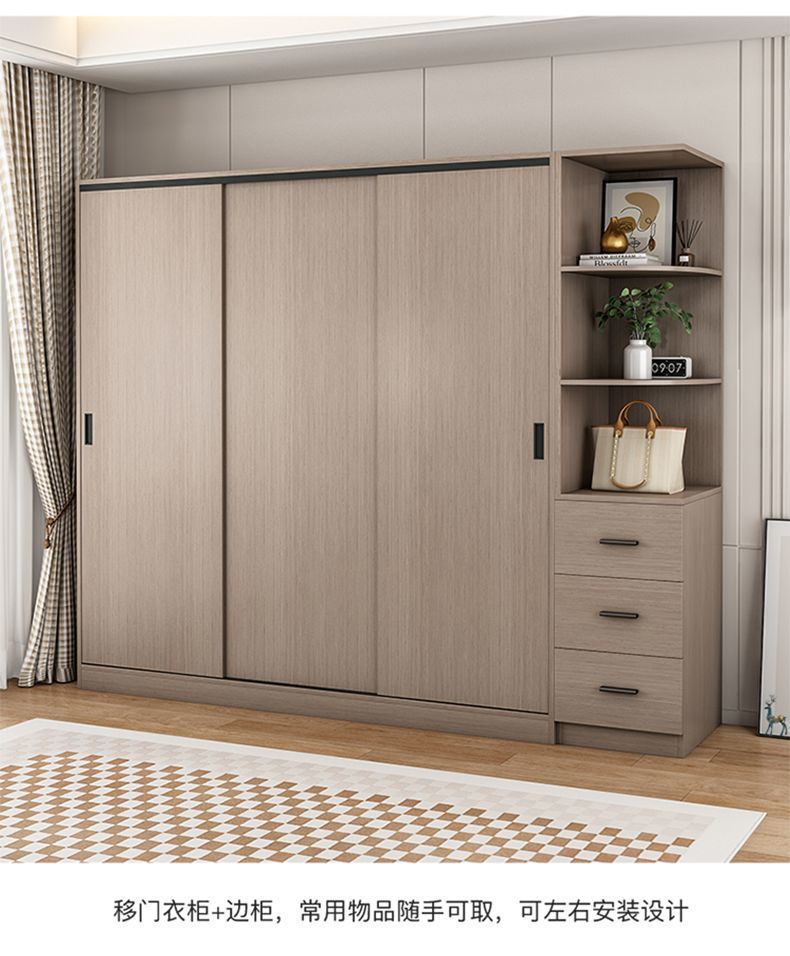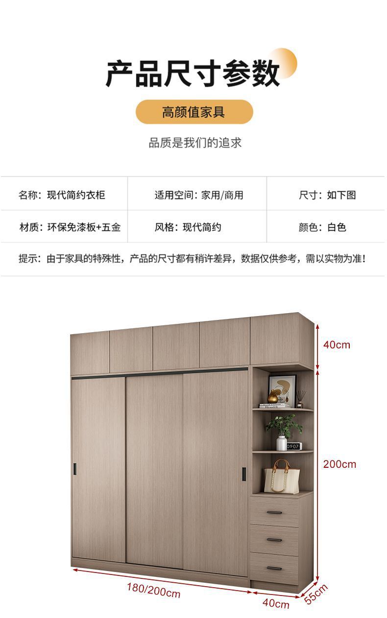 단단한 나무 슬라이딩 도어 옷장 가정용 침실 생태 보드 간단한 조립 임대 룸 두꺼운 코트 캐비닛