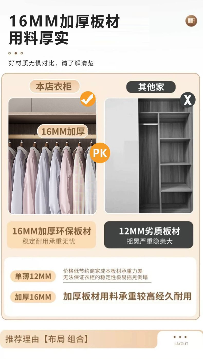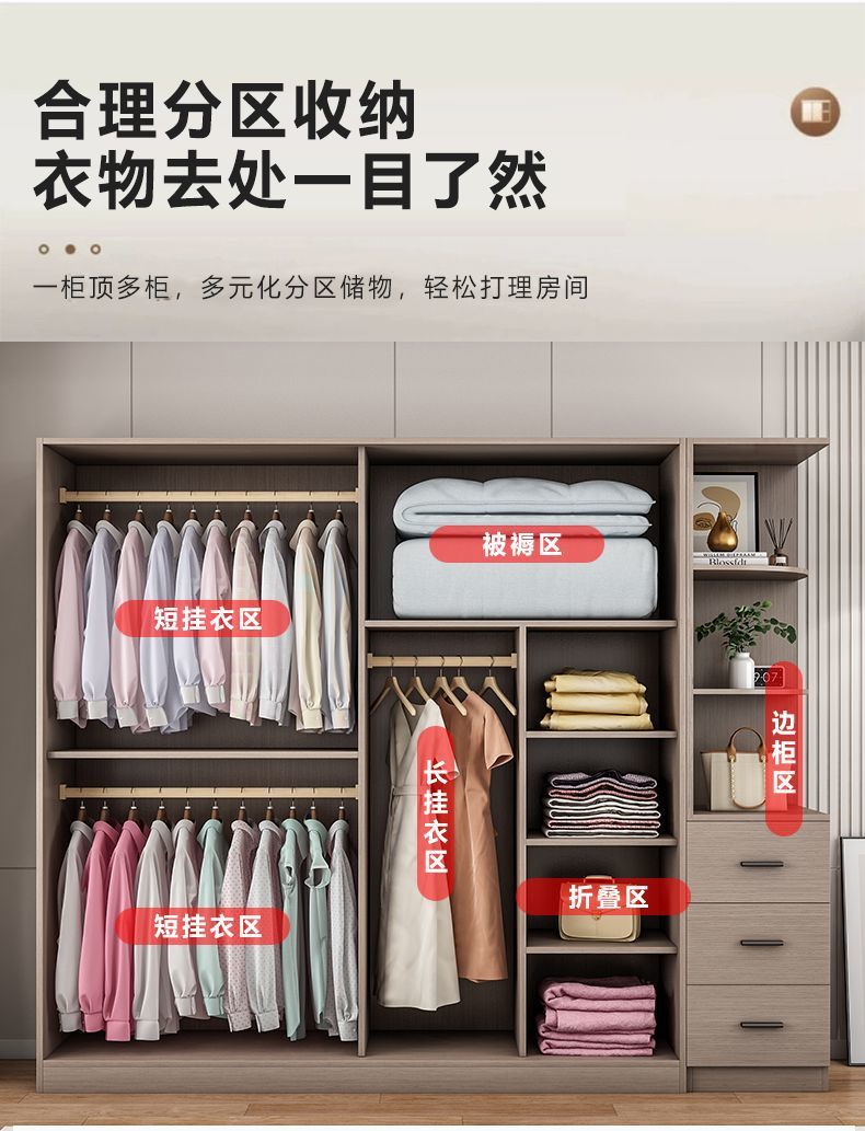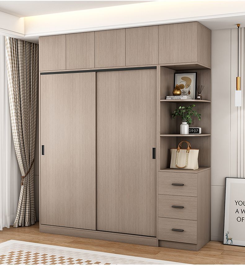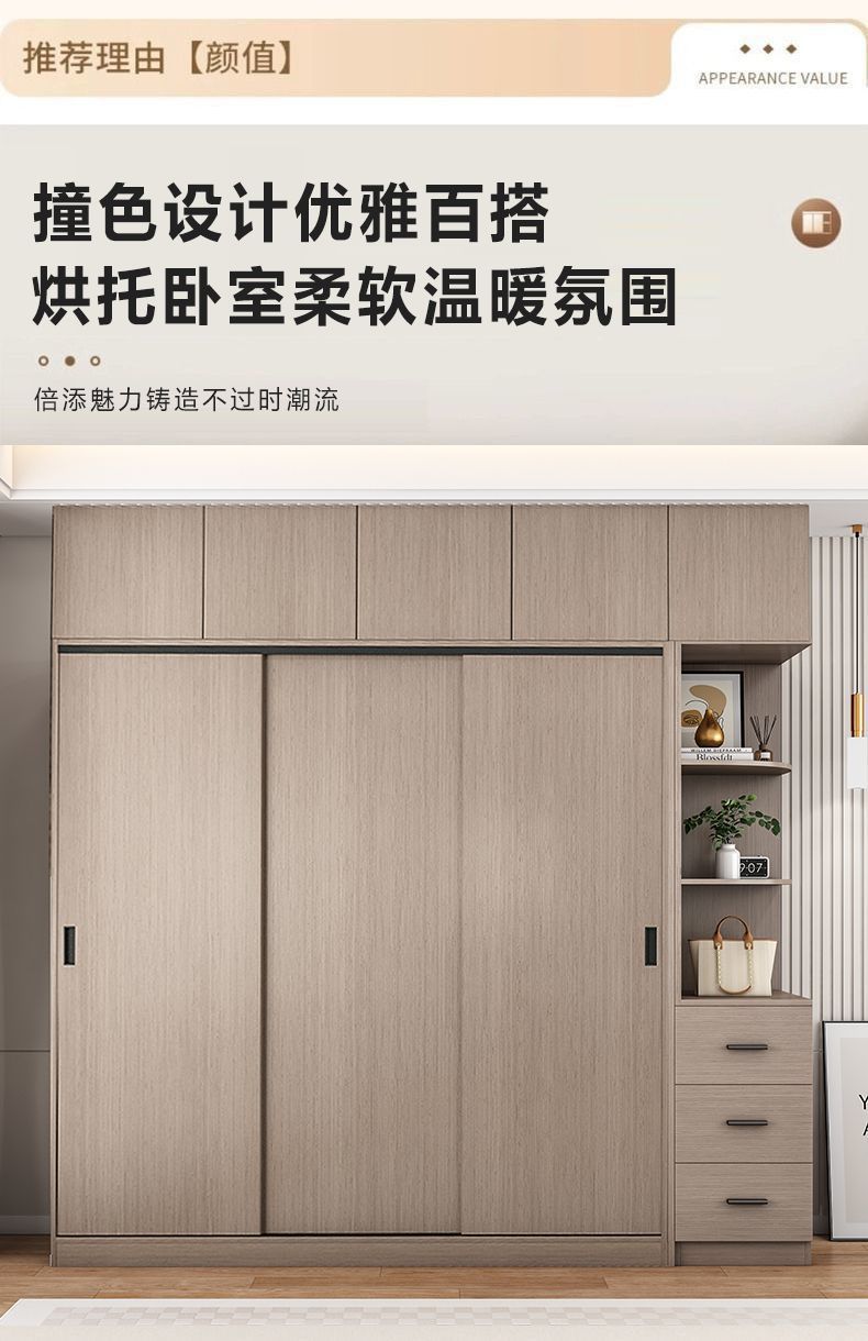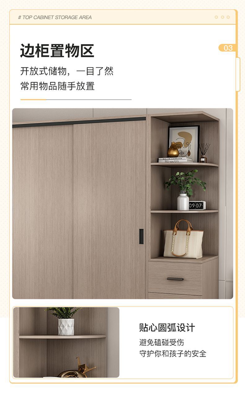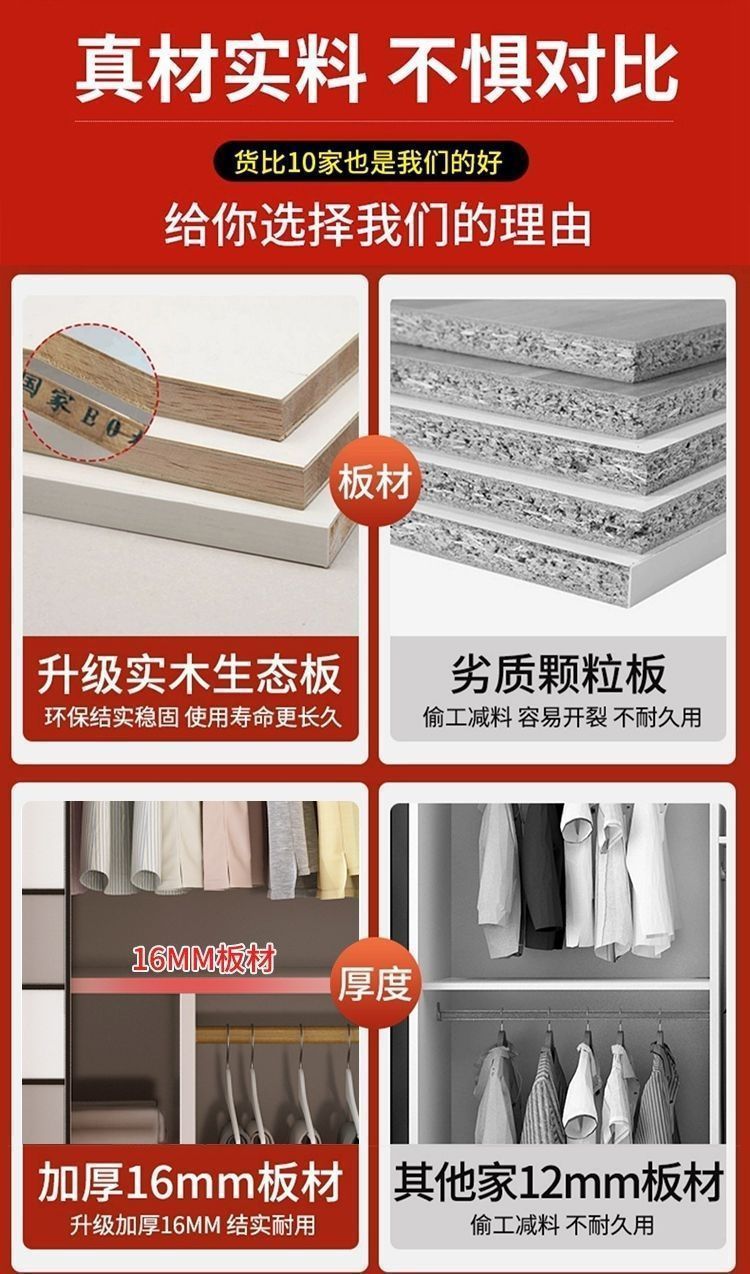 단단한 나무 슬라이딩 도어 옷장 가정용 침실 생태 보드 간단한 조립 임대 룸 두꺼운 코트 캐비닛