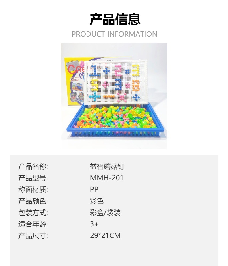 버섯 네일 조합 플러그 보드 어린이 퍼즐 퍼즐 장난감 3-7 세 아기 퍼즐 빌딩 블록 제조 업체 도매