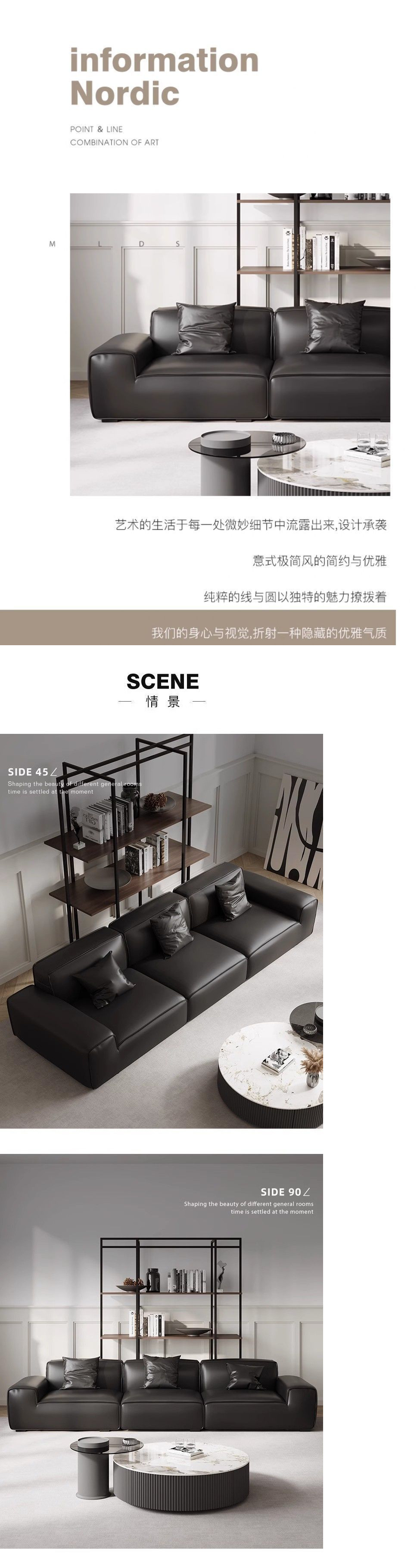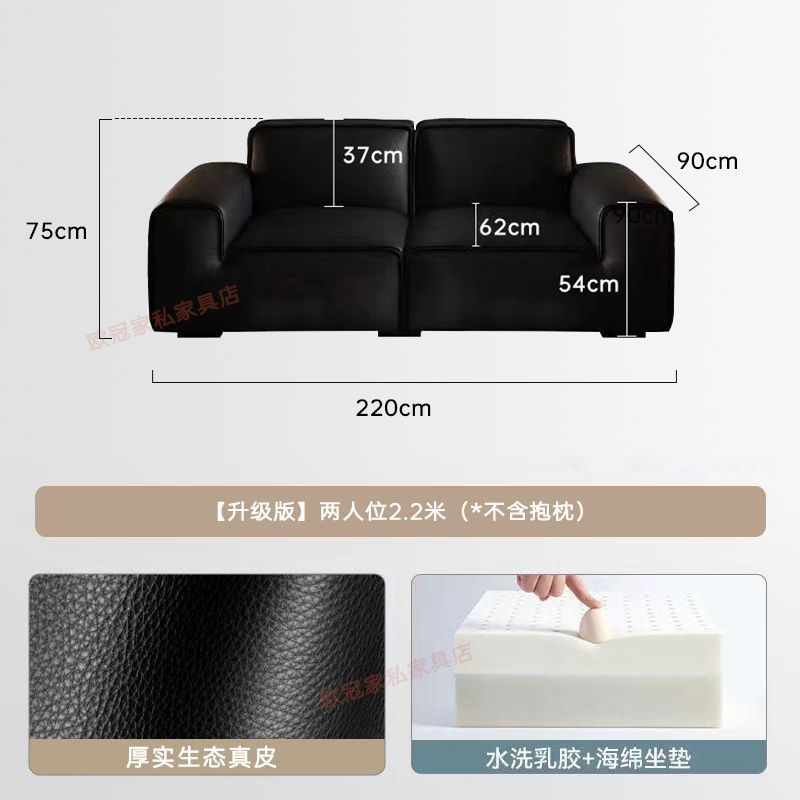 큰 검은 소 소파 이탈리아 스타일 간단한 현대 거실 가죽 두부 블록 스트레이트 행 라텍스 휴식 소파 아파트 임대스토어 가기