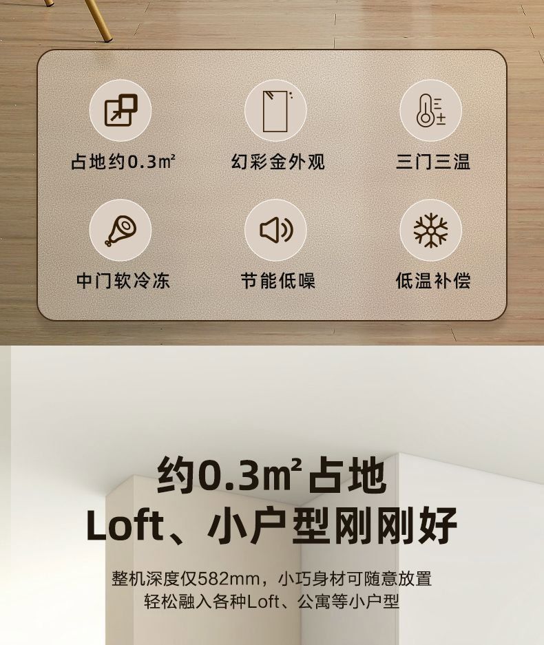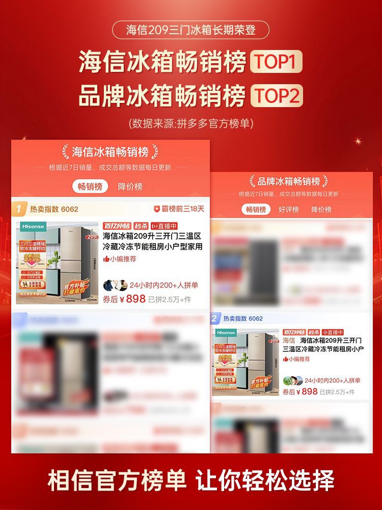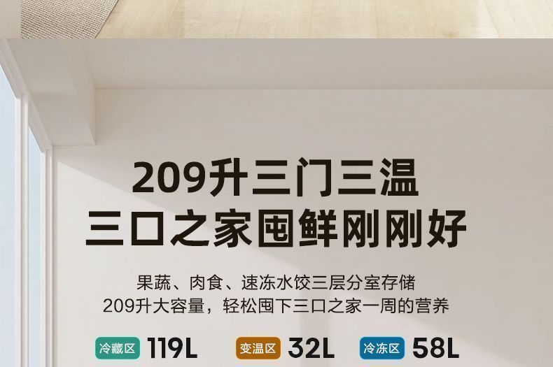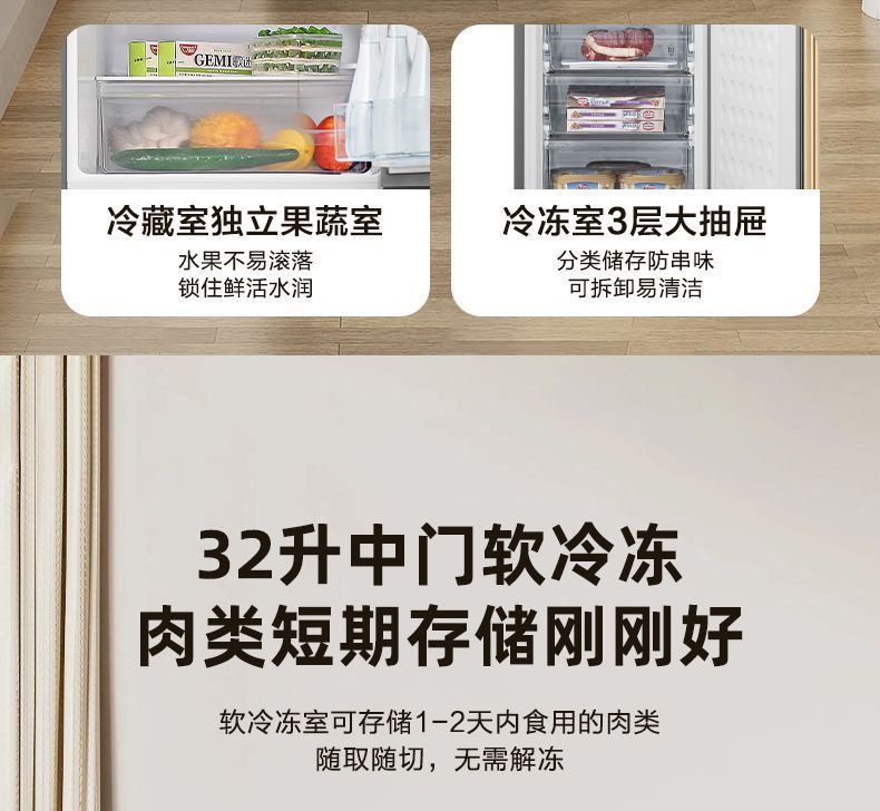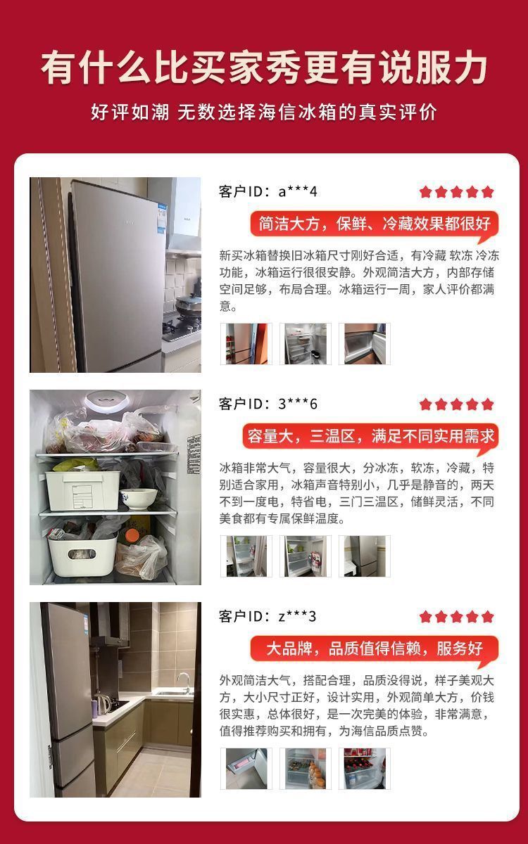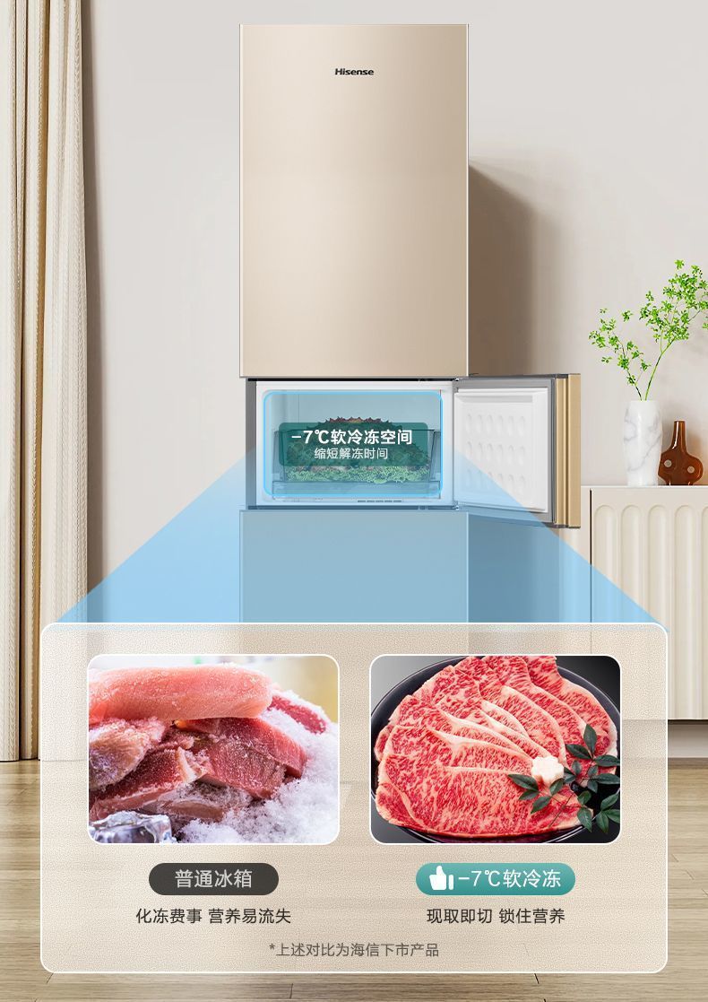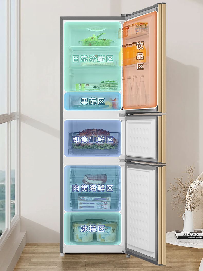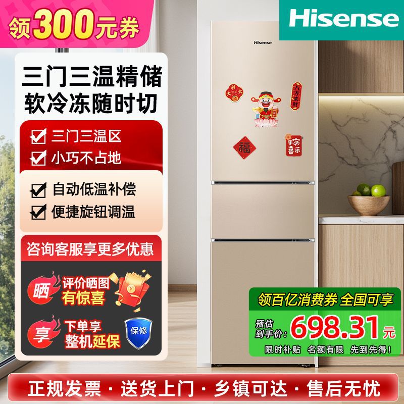 하이센스 냉장고 209 리터 3 도어 3 온도 존 냉동 에너지 절약 임대 소형 가정용 냉장고스토어 가기