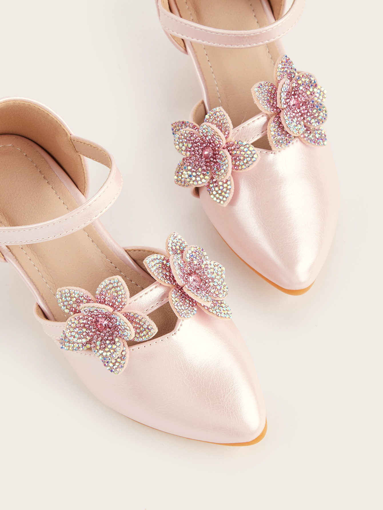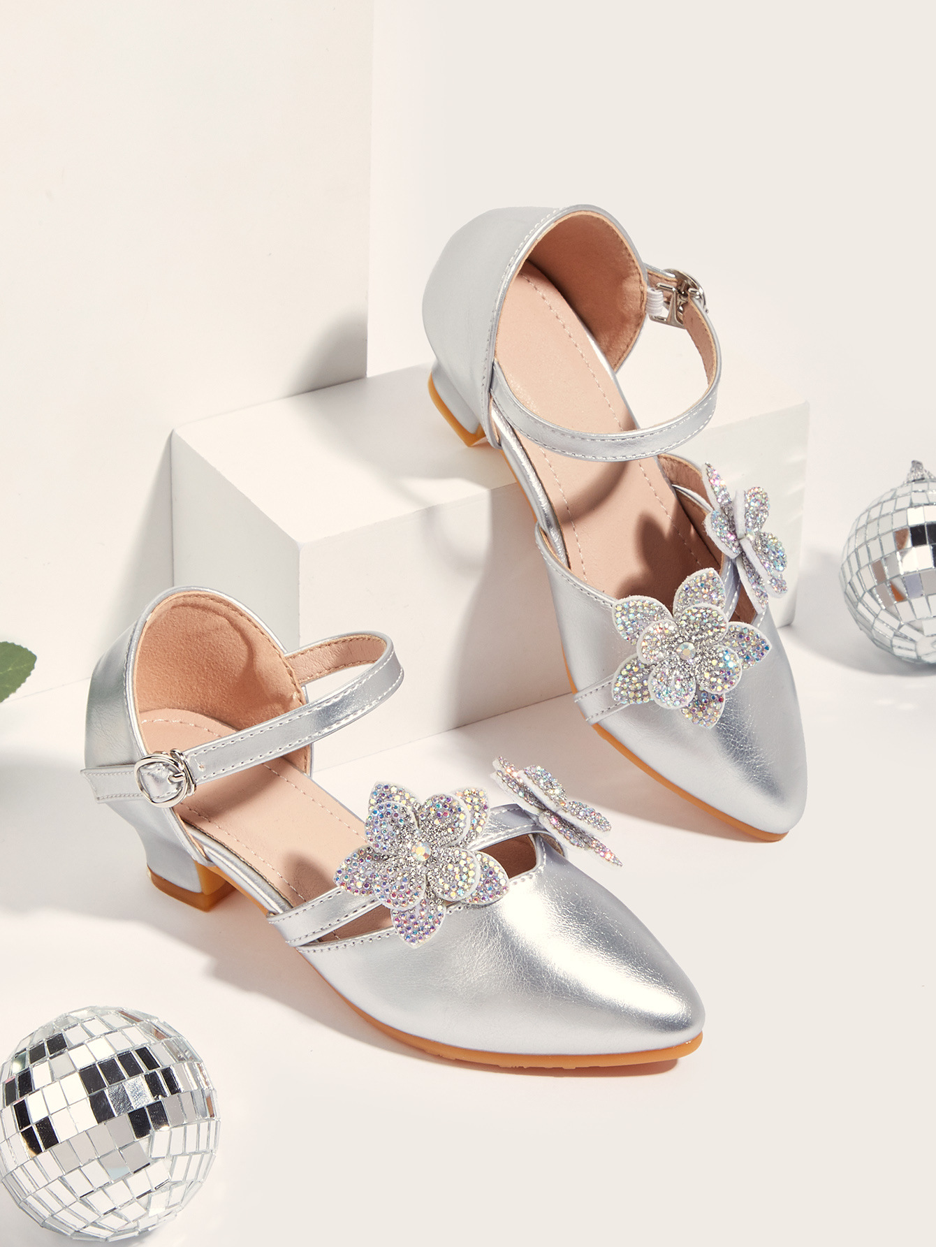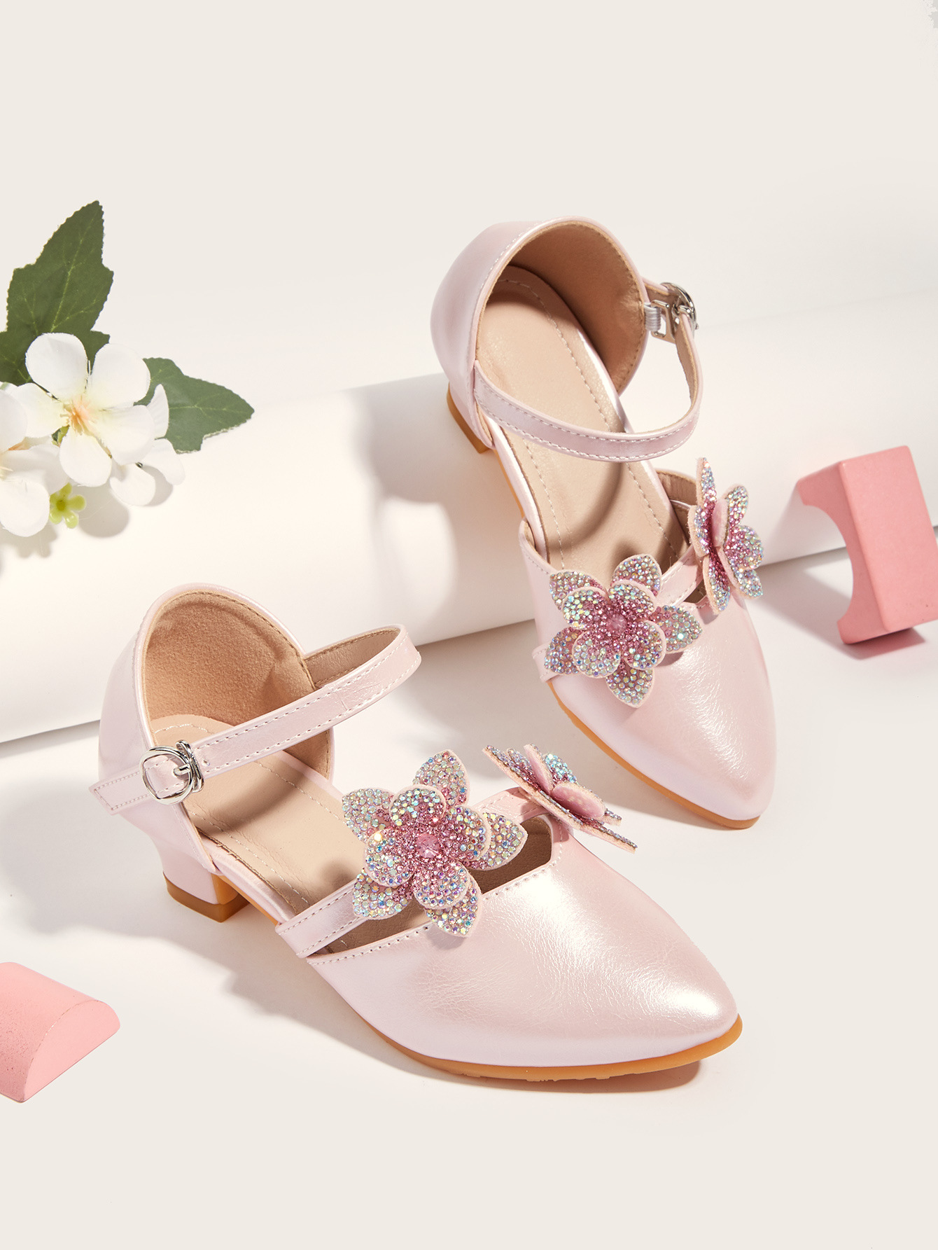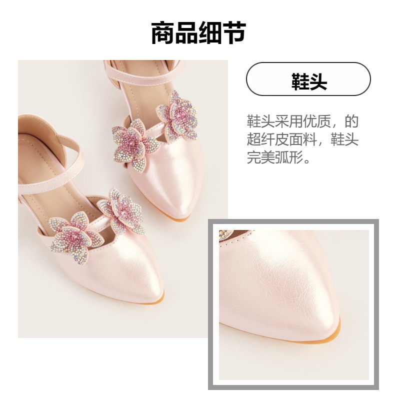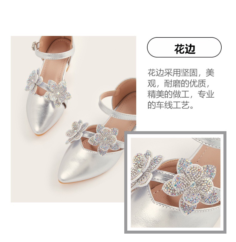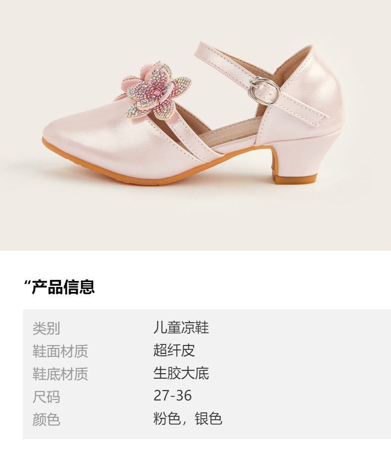 여아용 2026 신상 신발 뾰족코 하이힐 꽃무늬 공주풍 하이힐 중공 패션 아동화 어린이 샌들