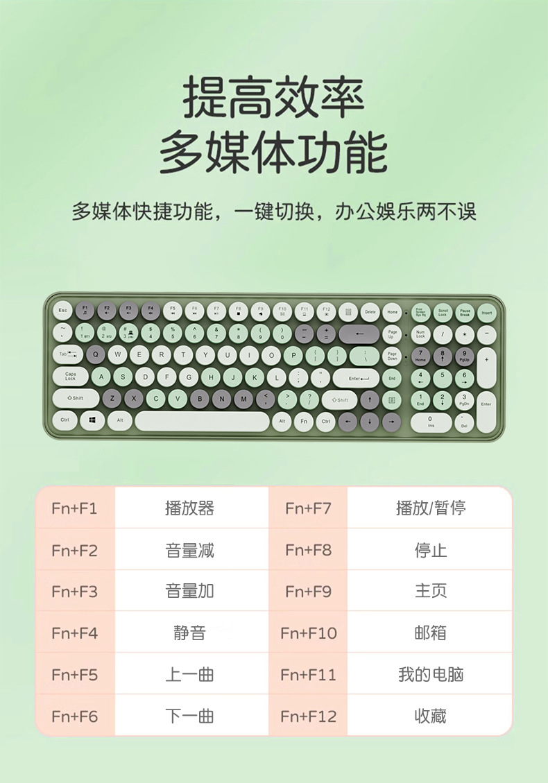 • [블루투스 버전 105키] 그래스 그린 무선 블루투스 키보드 [듀얼 모드 무선 + 블루투스]