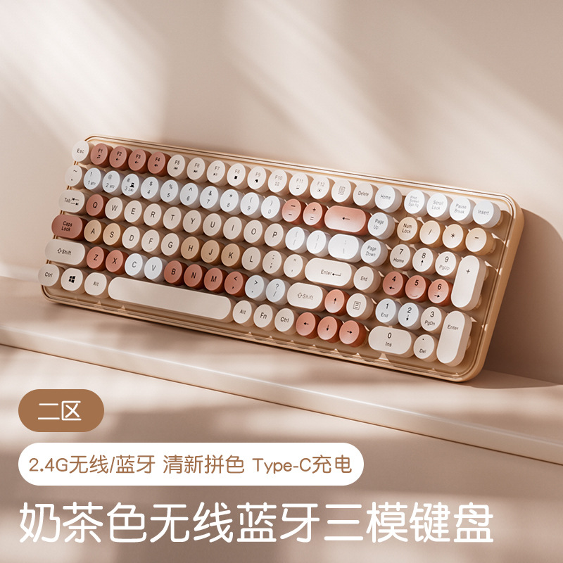 • [블루투스 버전 105키] 밀크티 컬러 무선 블루투스 키보드 [듀얼모드 무선 + 블루투스]