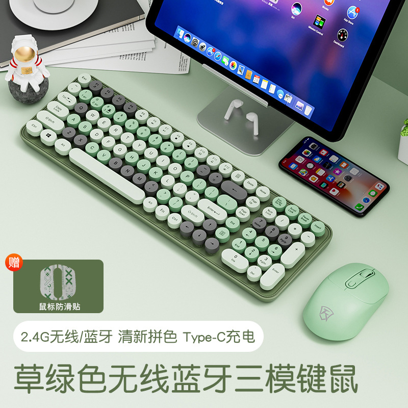 충전식 블루투스 키보드 기계식 느낌 컴퓨터 노트북 타이핑 무선 마우스 세트 아이패드 무선 듀얼 모드