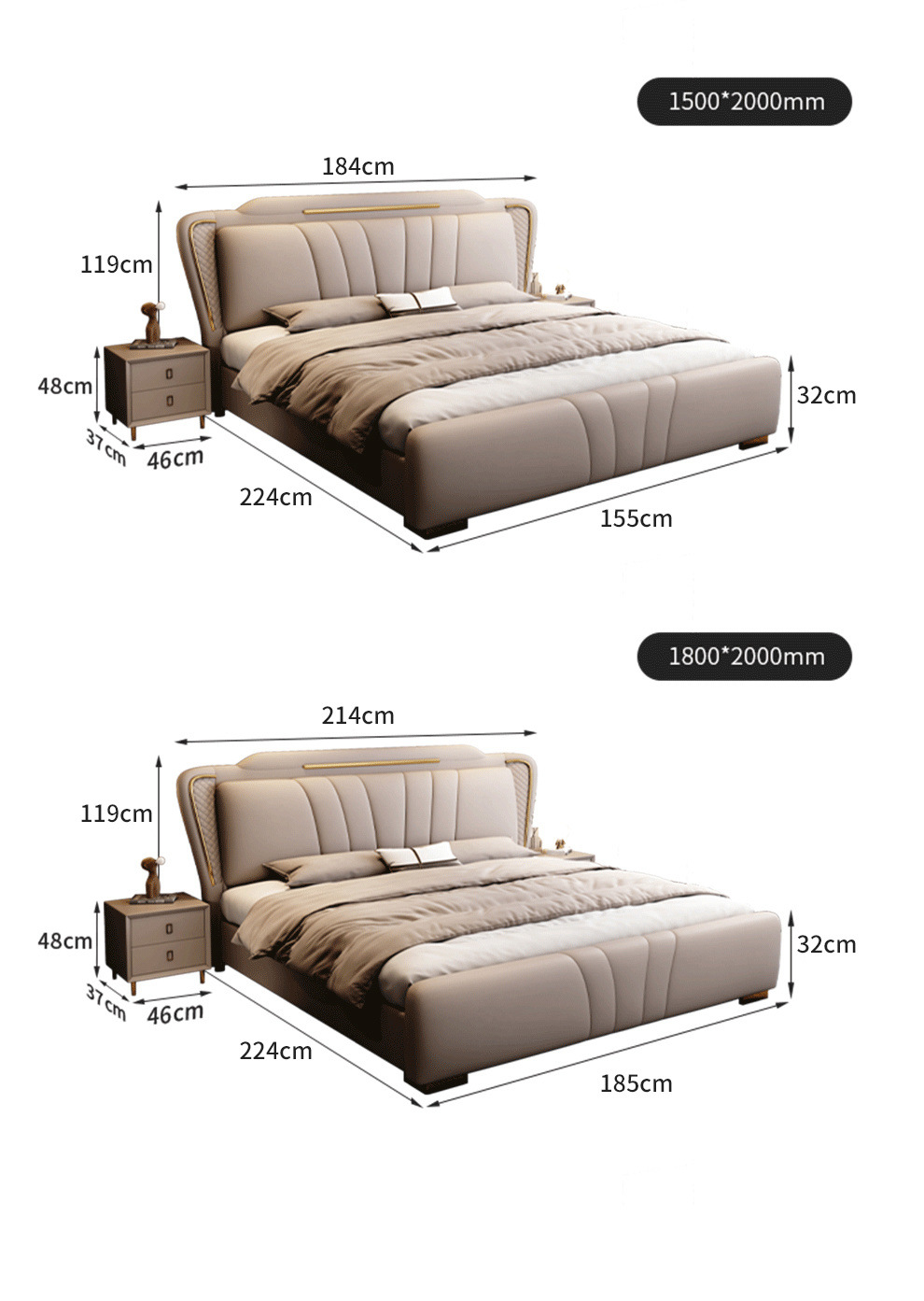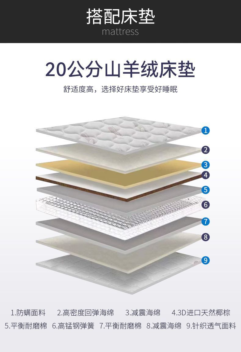 • 고품질 침대 + 20cm5D 라텍스 매트리스 + 캐비닛 1개