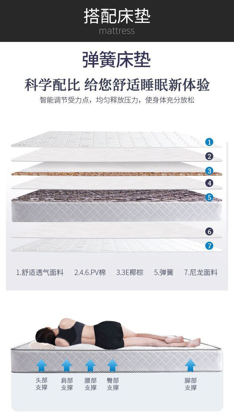 • 고급 침대 + 20cm 스프링 매트리스 * 캐비닛 1