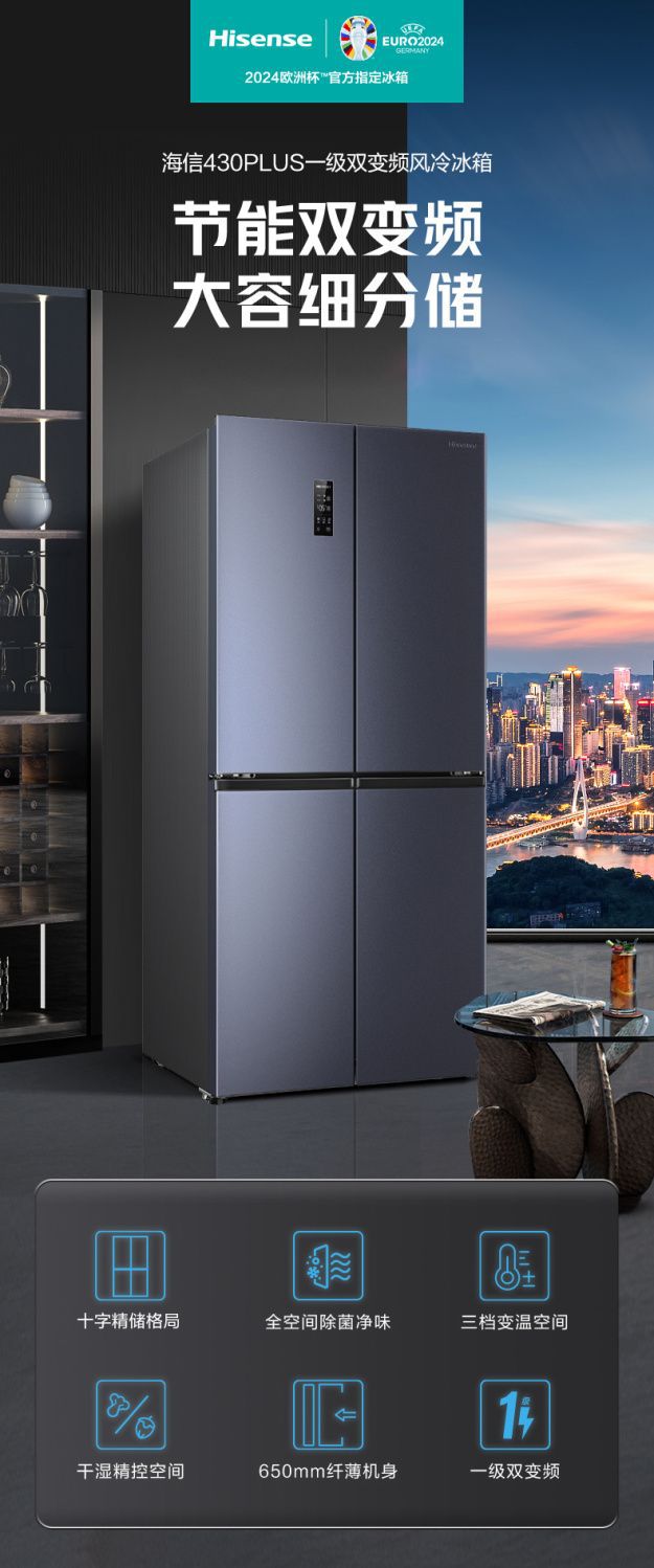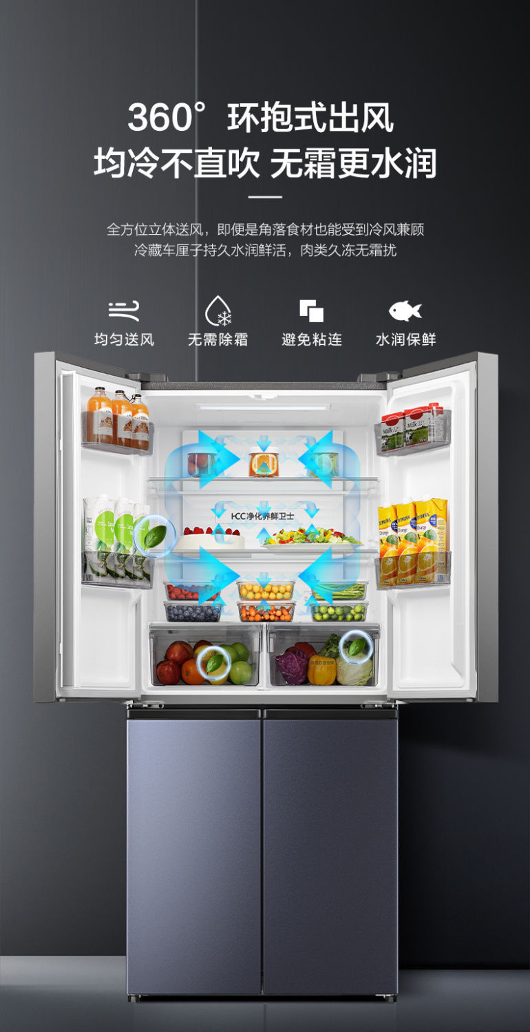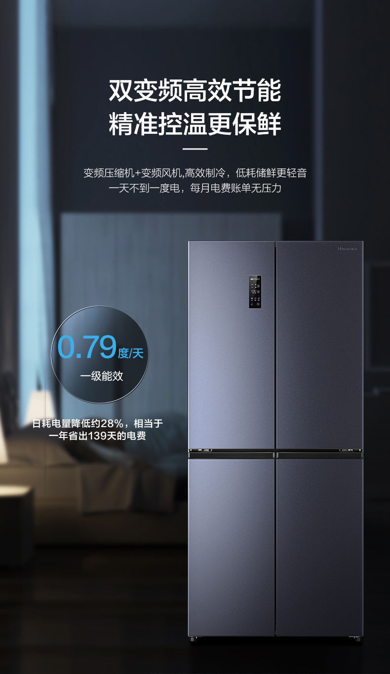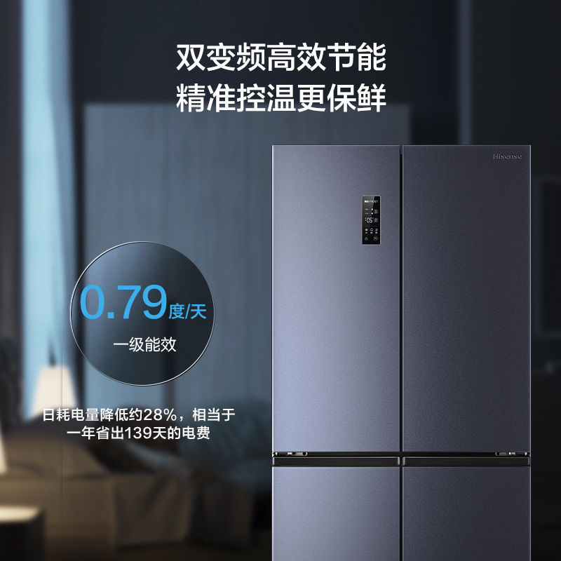 하이센스 430 이중 주파수 변환 살균 크로스 4 도어 가정용 냉장고 공냉식 서리없는 절전 임베디드스토어 가기