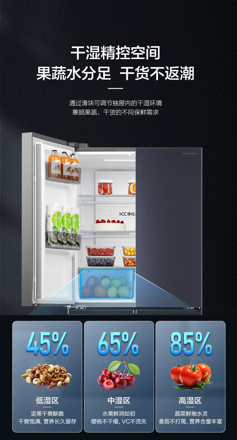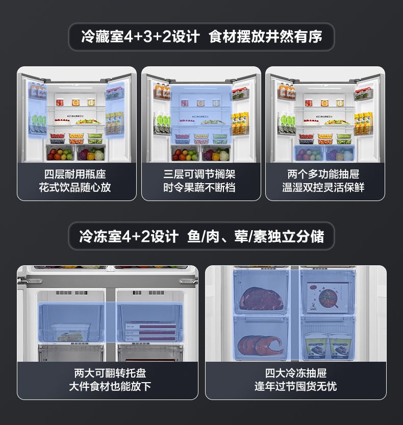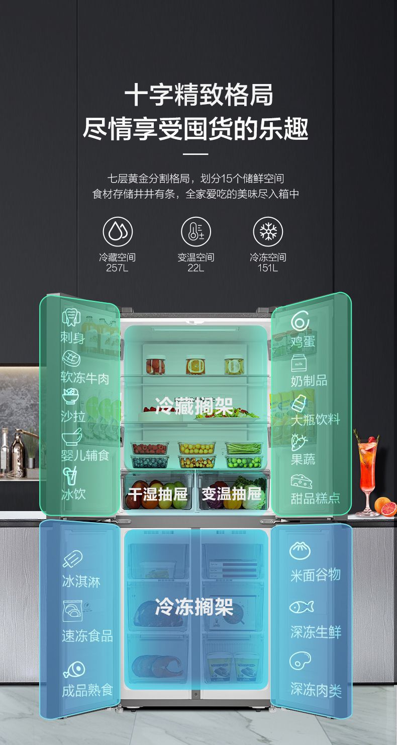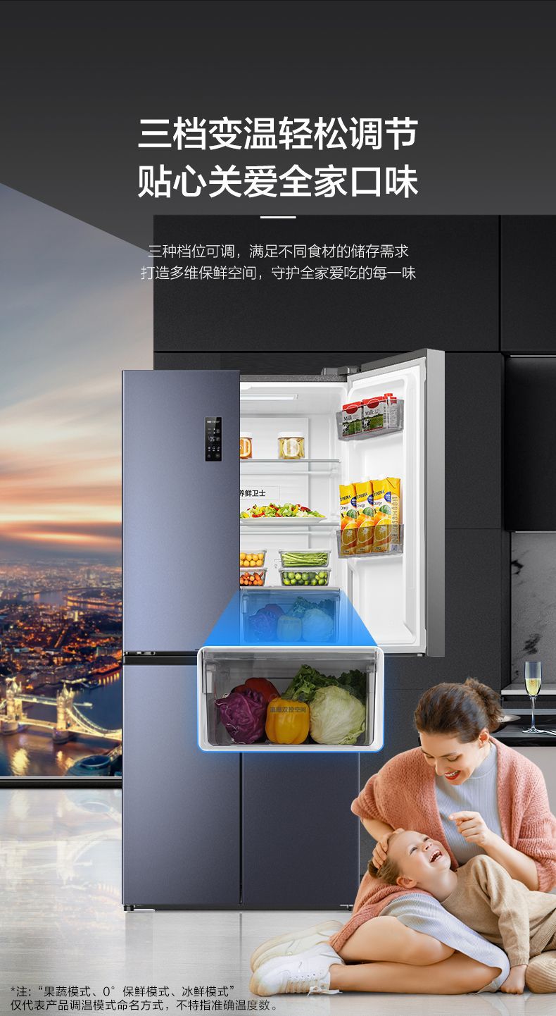 하이센스 430 이중 주파수 변환 살균 크로스 4 도어 가정용 냉장고 공냉식 서리없는 절전 임베디드스토어 가기