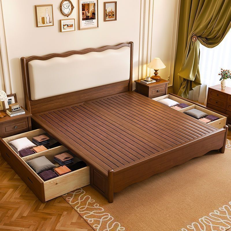 솔리드 우드 침대 노르딕 레트로 더블침대 한류 골동품 침대 프랑스 침대 간단한 소프트 백 웨딩 침대 침실