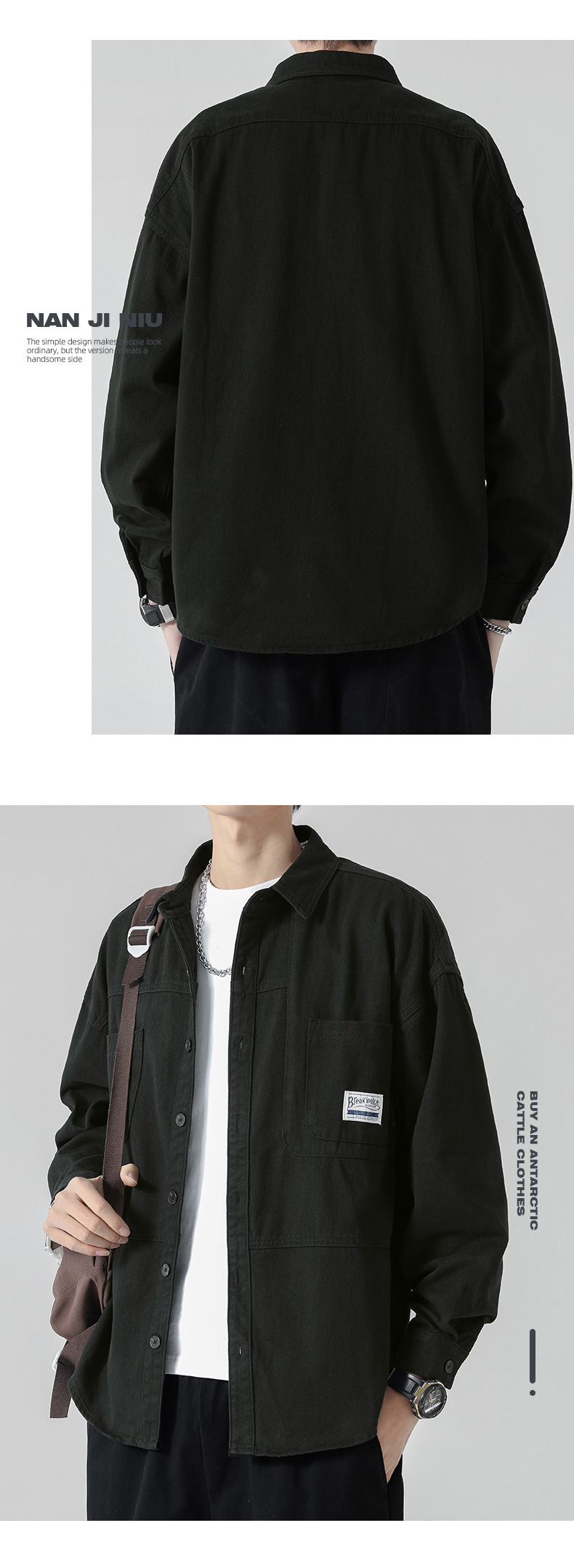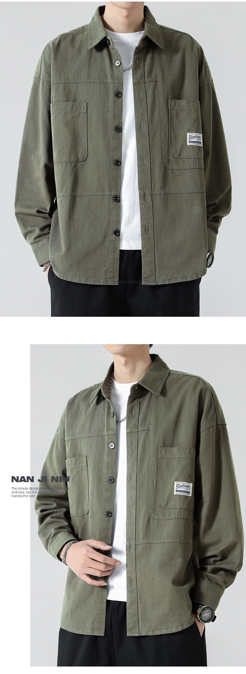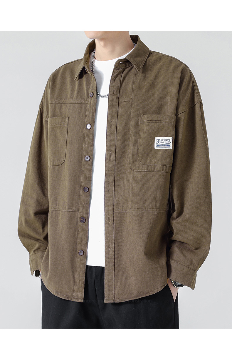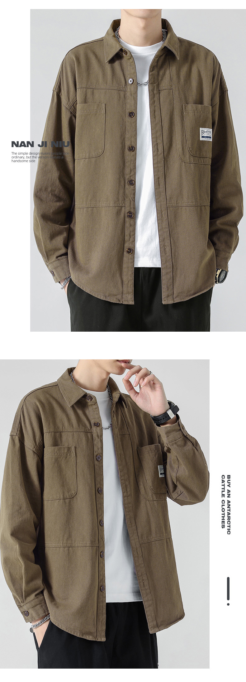 2025 새로운 긴 소매 셔츠 남자의 느슨한 캐주얼 작업복 봄 옷 봄 가을 남자 옷 코트스토어 가기