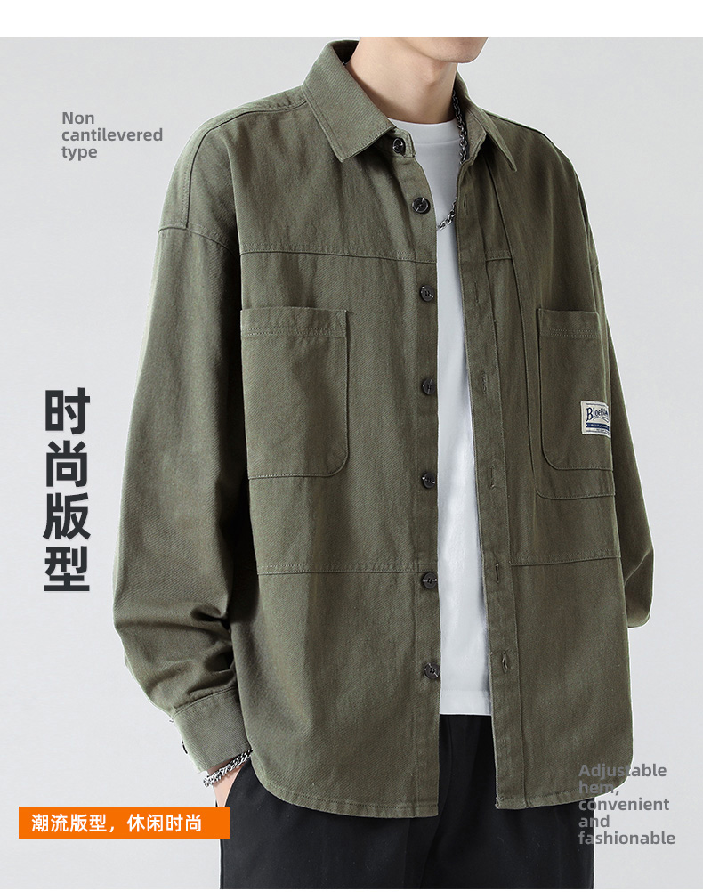 2025 새로운 긴 소매 셔츠 남자의 느슨한 캐주얼 작업복 봄 옷 봄 가을 남자 옷 코트