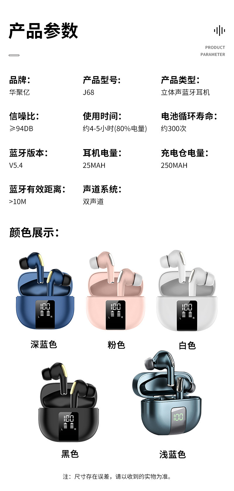 J68 신형 디지털 디스플레이 무선 블루투스 이어폰 5.4 블루투스 칩 스테레오 서라운드 노이즈 캔슬링 고화질 통화 이어폰스토어 가기