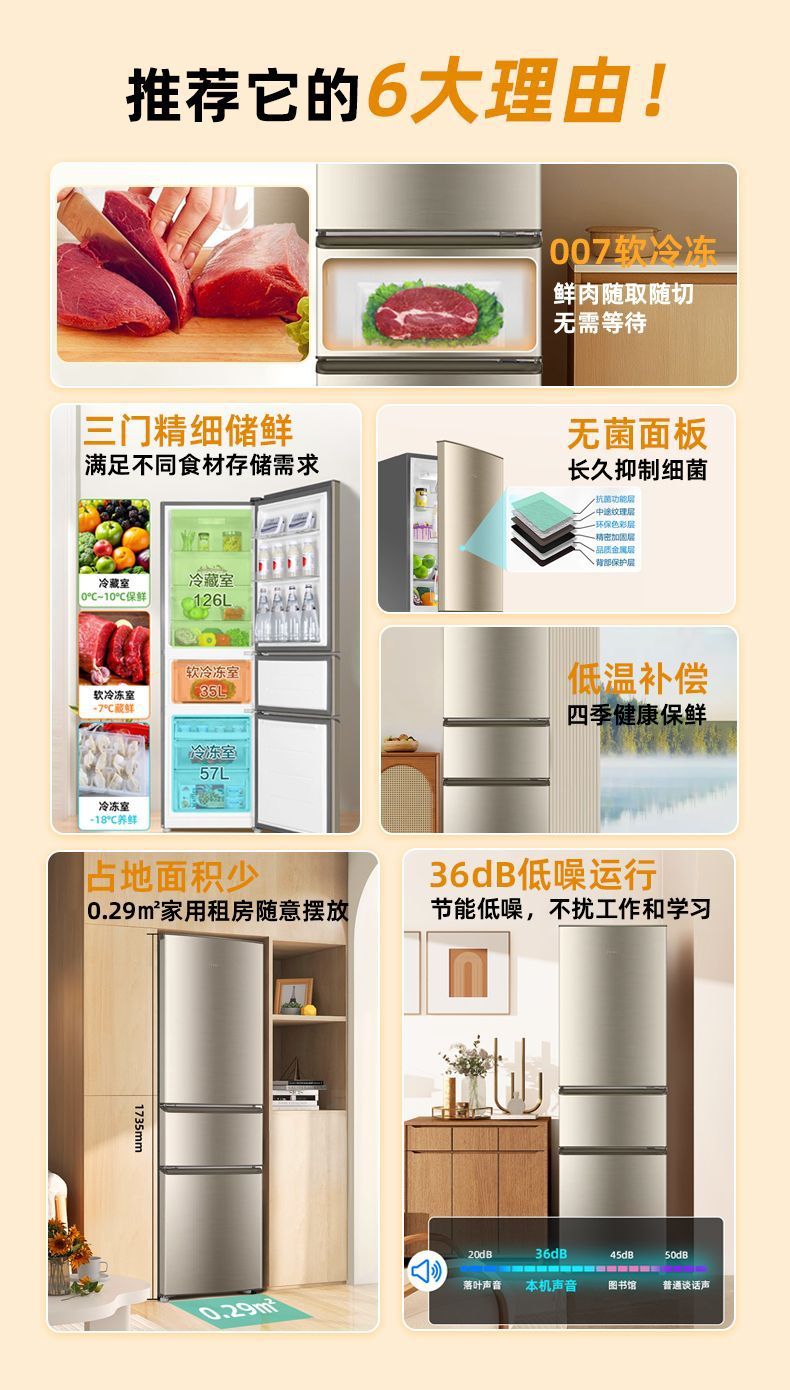 하이얼 냉장고 218 리터 3 작은 가정용 대용량 에너지 절약 저소음 기숙사 임대 소형 냉장고스토어 가기
