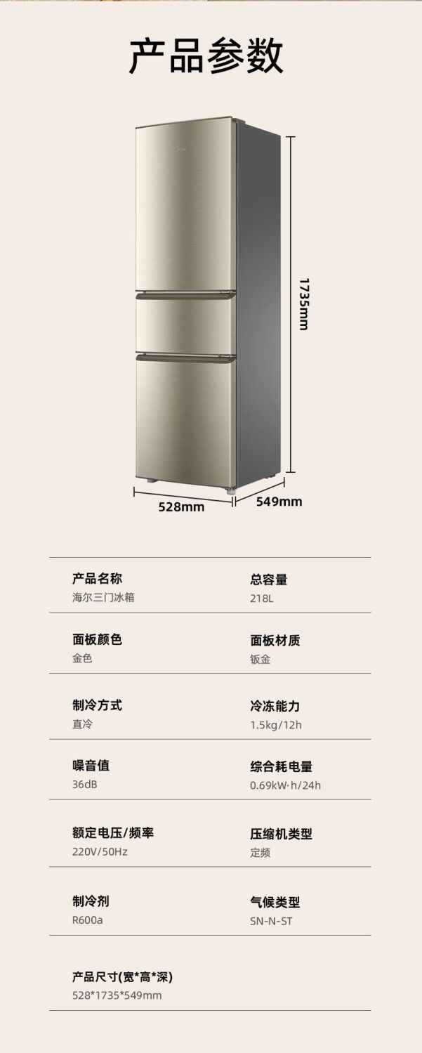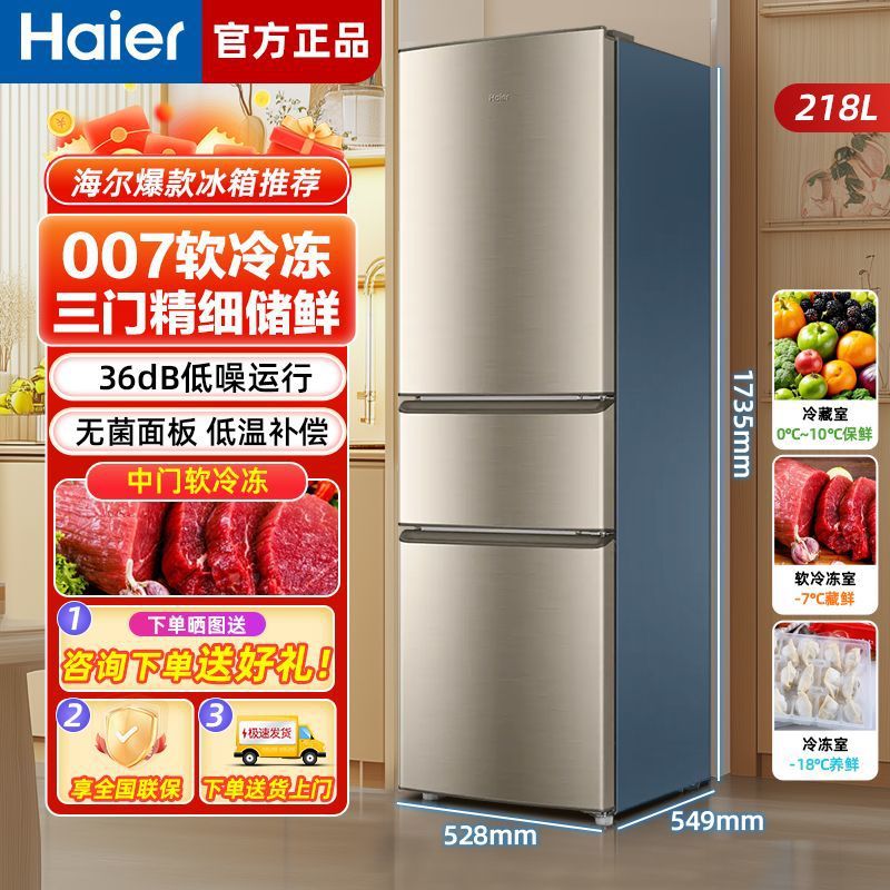 하이얼 냉장고 218 리터 3 작은 가정용 대용량 에너지 절약 저소음 기숙사 임대 소형 냉장고