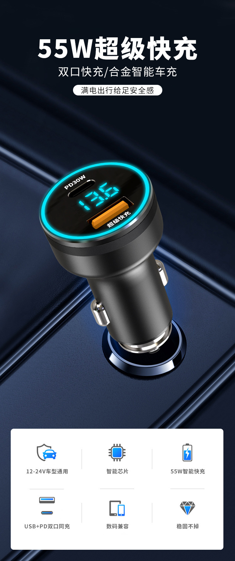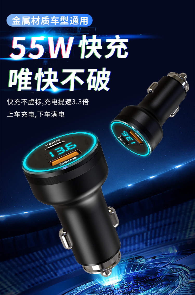 2023 새로운 담배 라이터 자동차 충전기 빠른 충전 디지털 디스플레이 자동차 충전기 검은 회색 자동차 담배 라이터에 적합스토어 가기