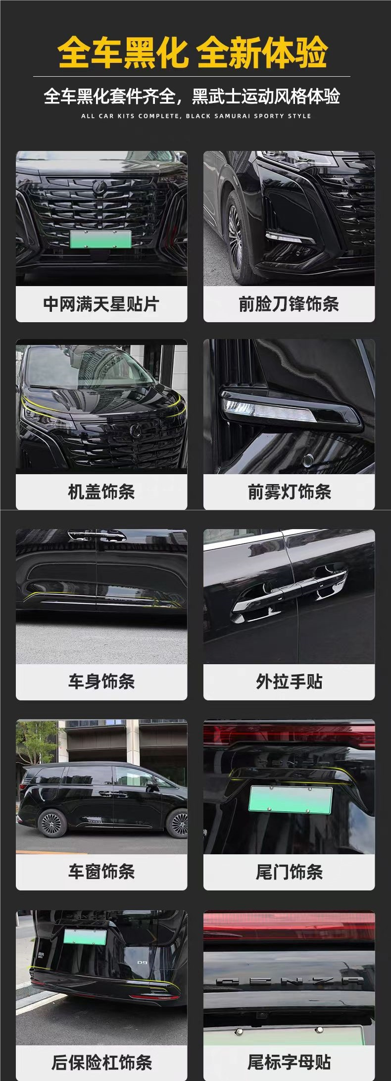 • 세트 - Denza Denza D9 - 풀카 블랙 워리어 키트 - EV 버전(67개 세트)