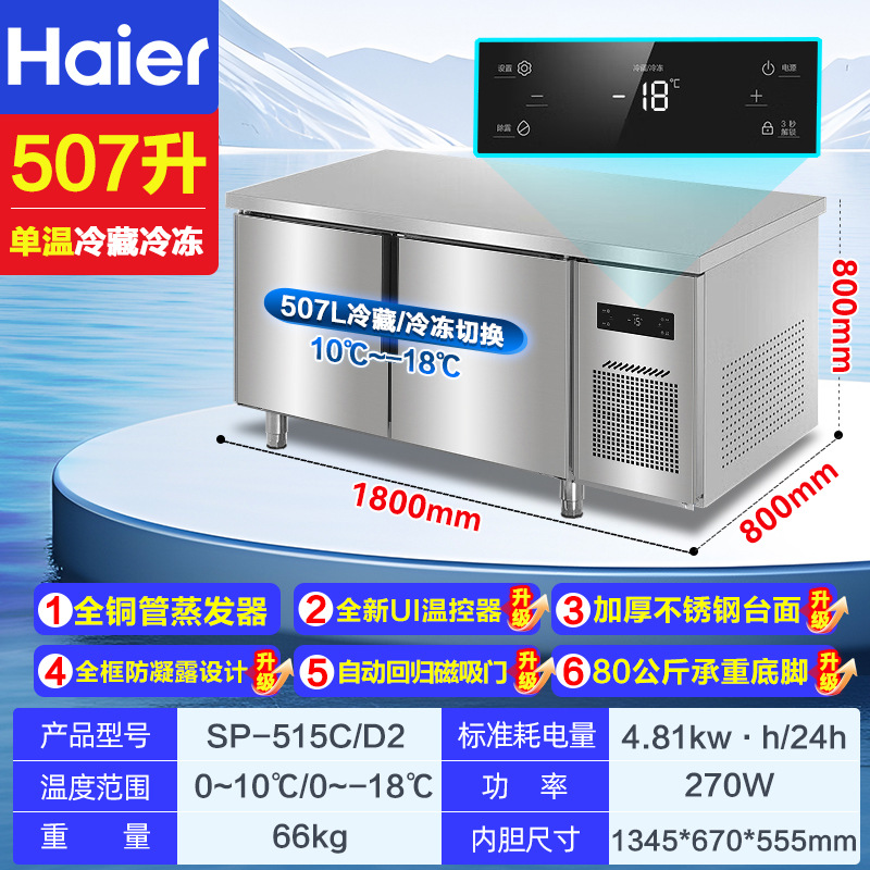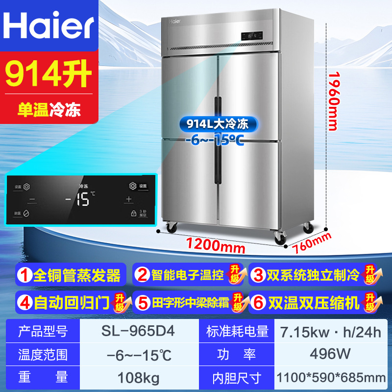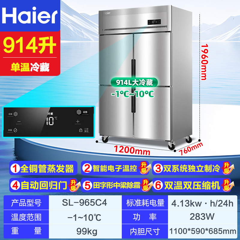 하이얼 상업용 주방 냉장고 냉동 모든 구리 모든 강철 단일 도어 4 도어 6 도어 공기 냉각 수직 대용량