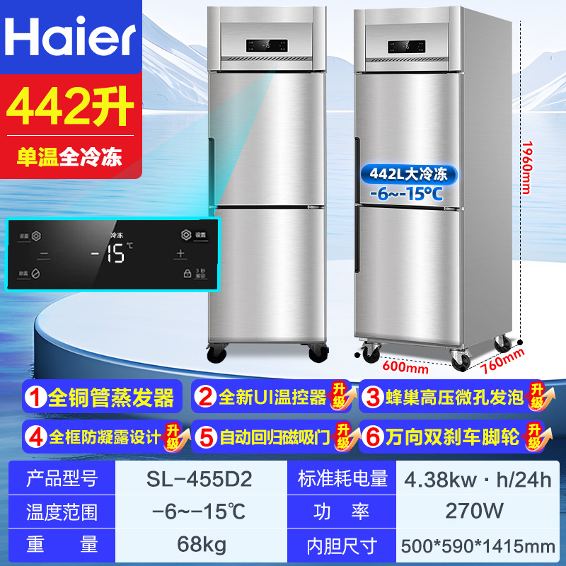 하이얼 상업용 주방 냉장고 냉동 모든 구리 모든 강철 단일 도어 4 도어 6 도어 공기 냉각 수직 대용량스토어 가기