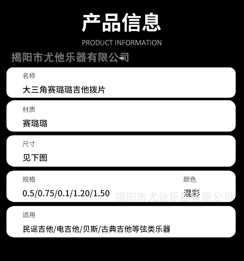 기타 선택 셀룰로이드 선택 0.5 0.75 1mm 선택 큰 삼각형 손가락 선택스토어 가기
